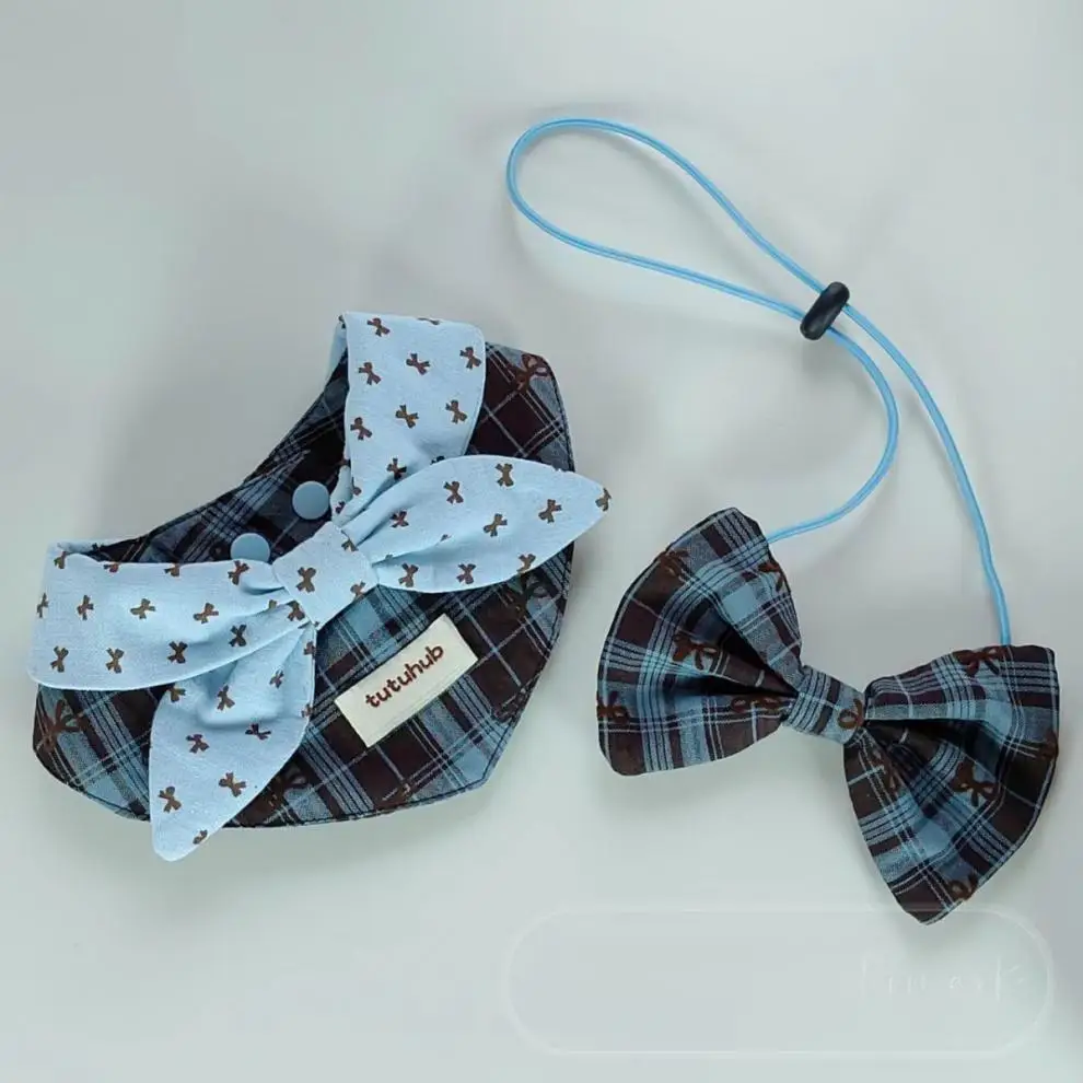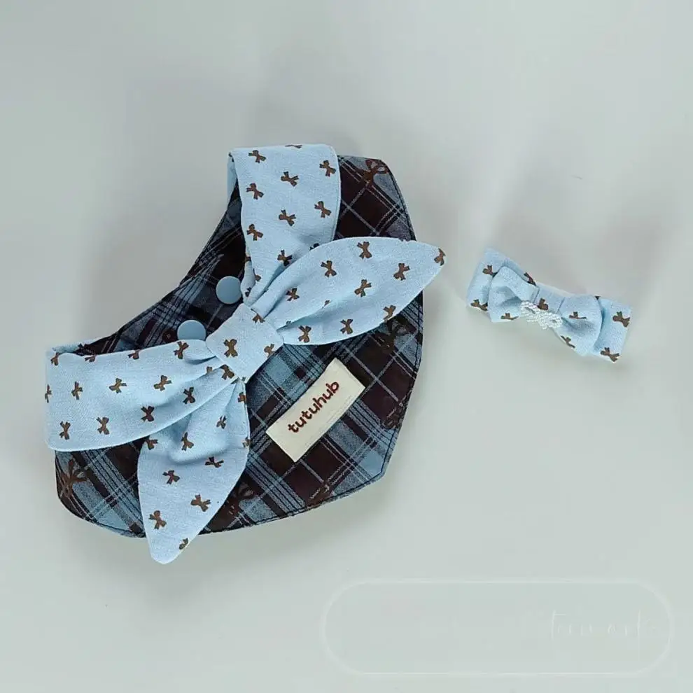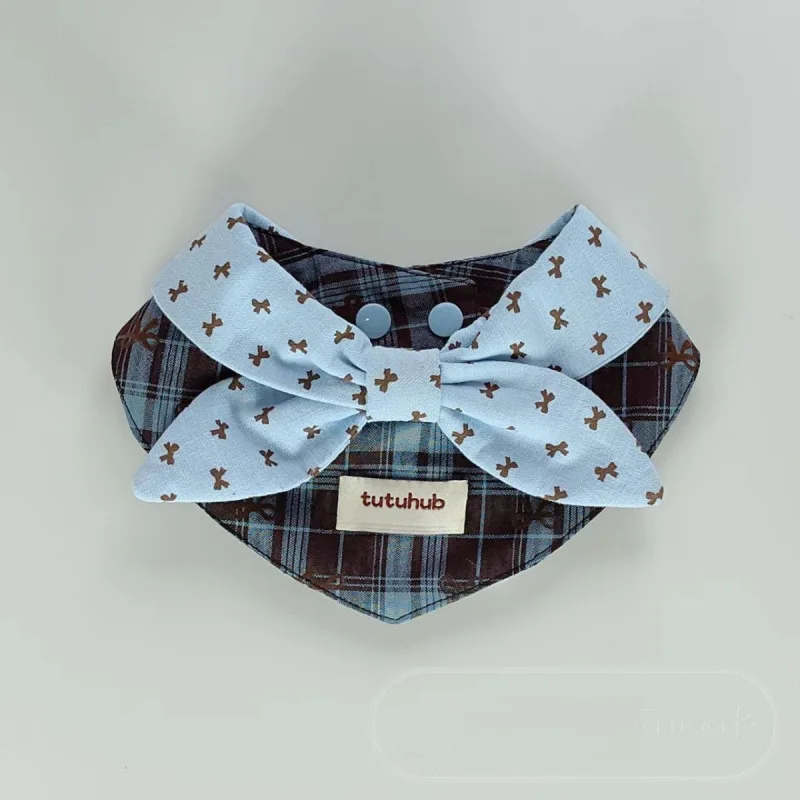 Babero con lazo a cuadros para mascotas, babero para gatos, bufanda Triangular, Collar, diadema con lazo bonito para perros pequeños, ropa para cachorros, ropa para perros pequeños