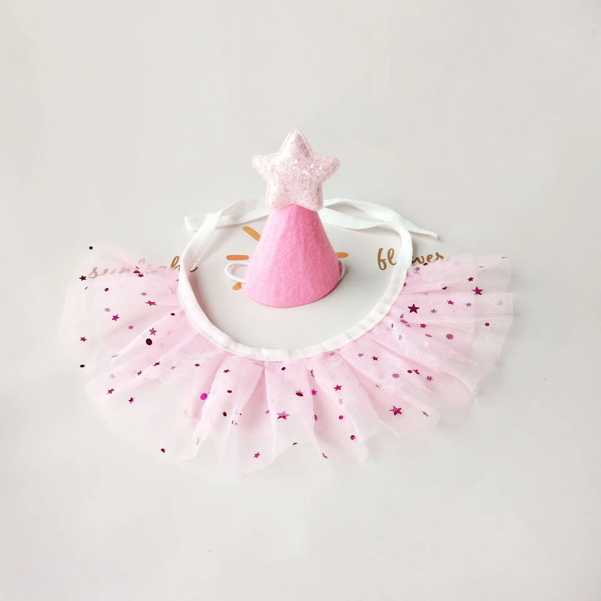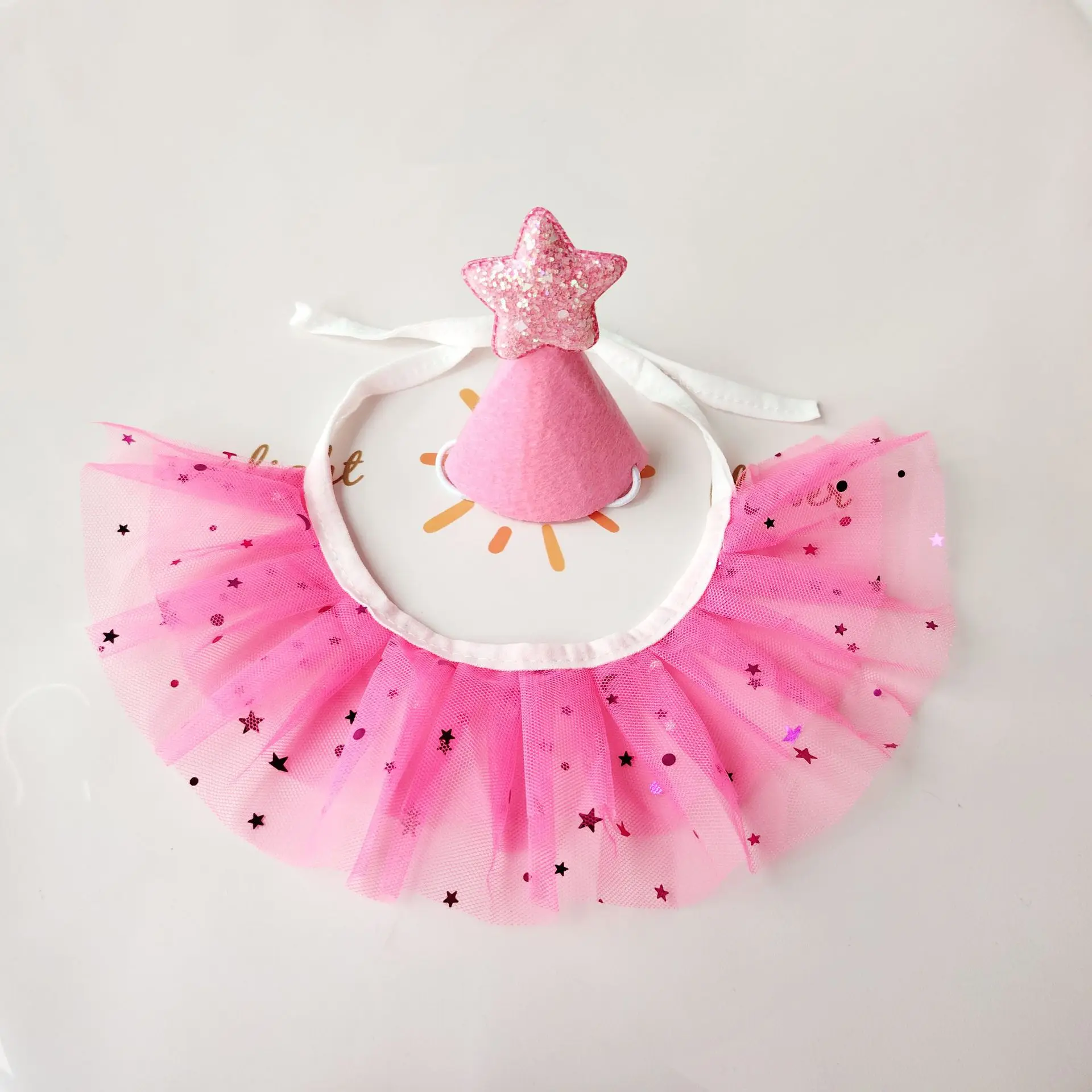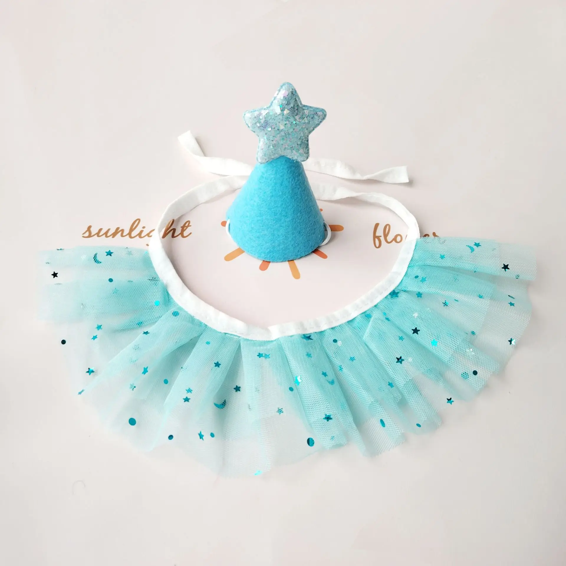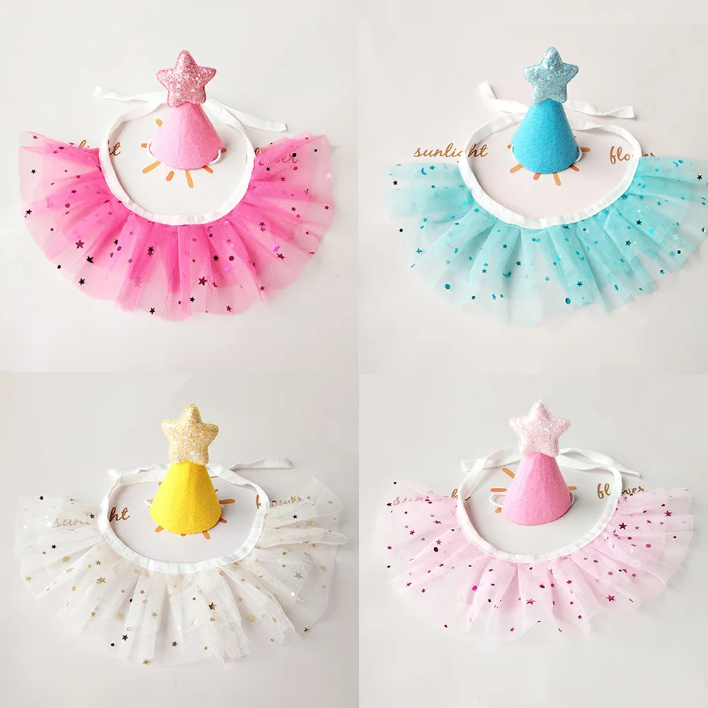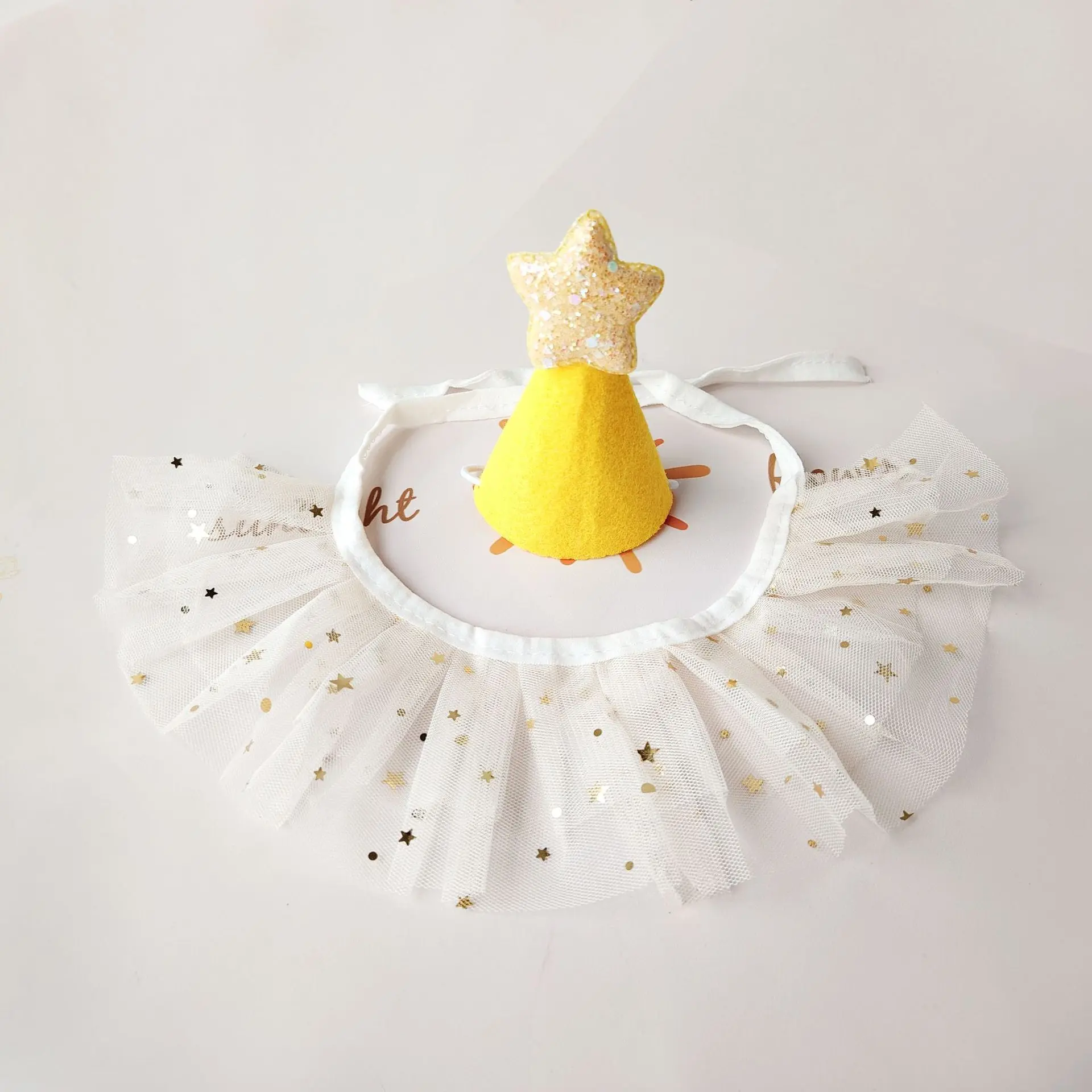 Babero de malla con forma de estrella para mascotas, bufanda para mascotas, sombrero, traje de vacaciones para perros y gatos, conjunto de cumpleaños, accesorios para cachorros, accesorios para perros pequeños