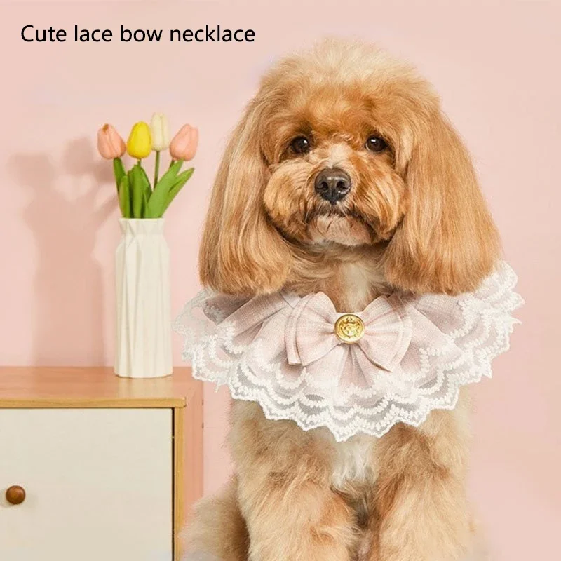 Babero navideño para mascotas con adorno de encaje, bonito lazo, collar para gato, diadema, círculo para gato, bufanda para perro pequeño