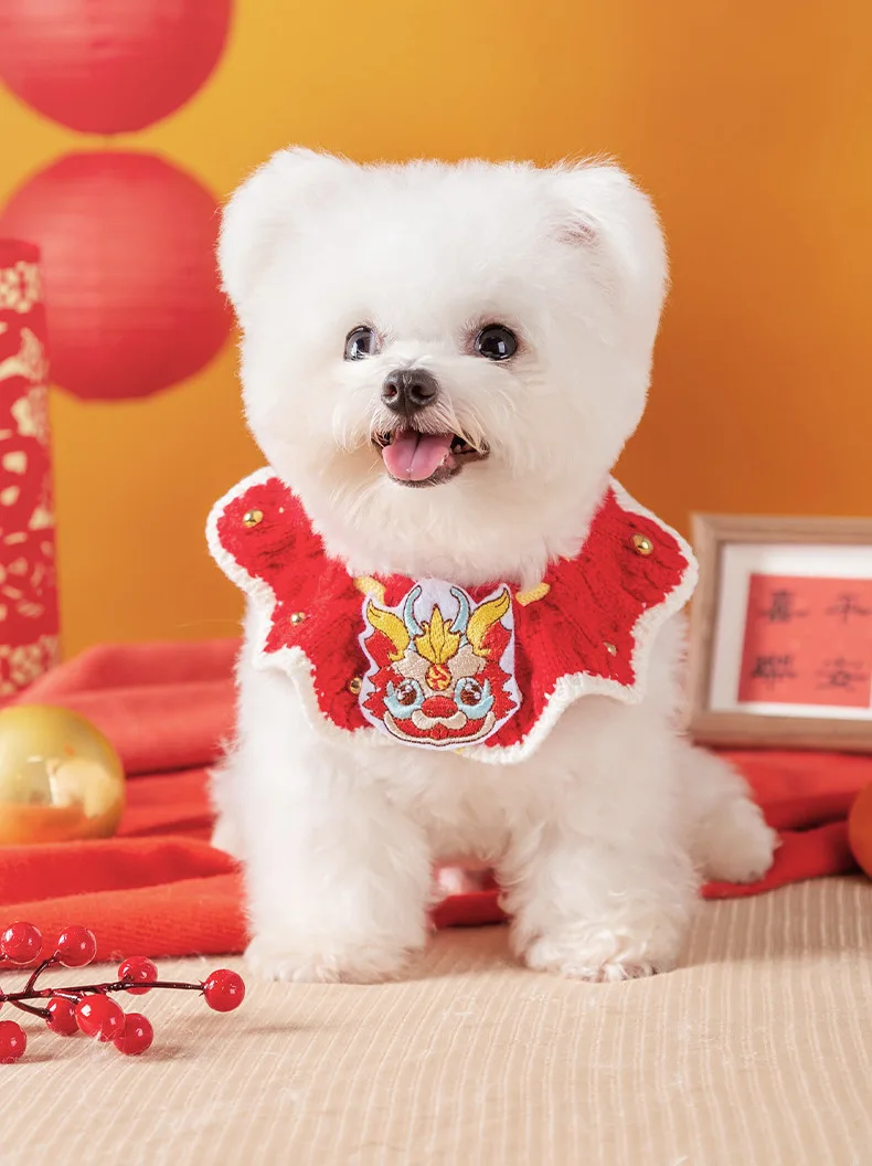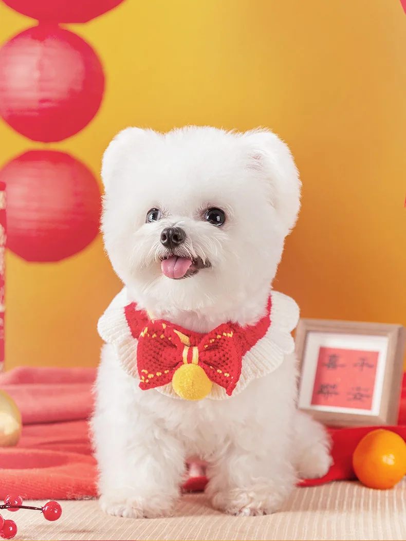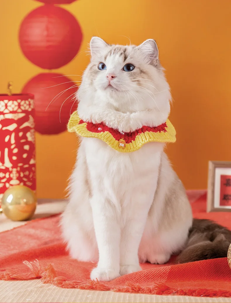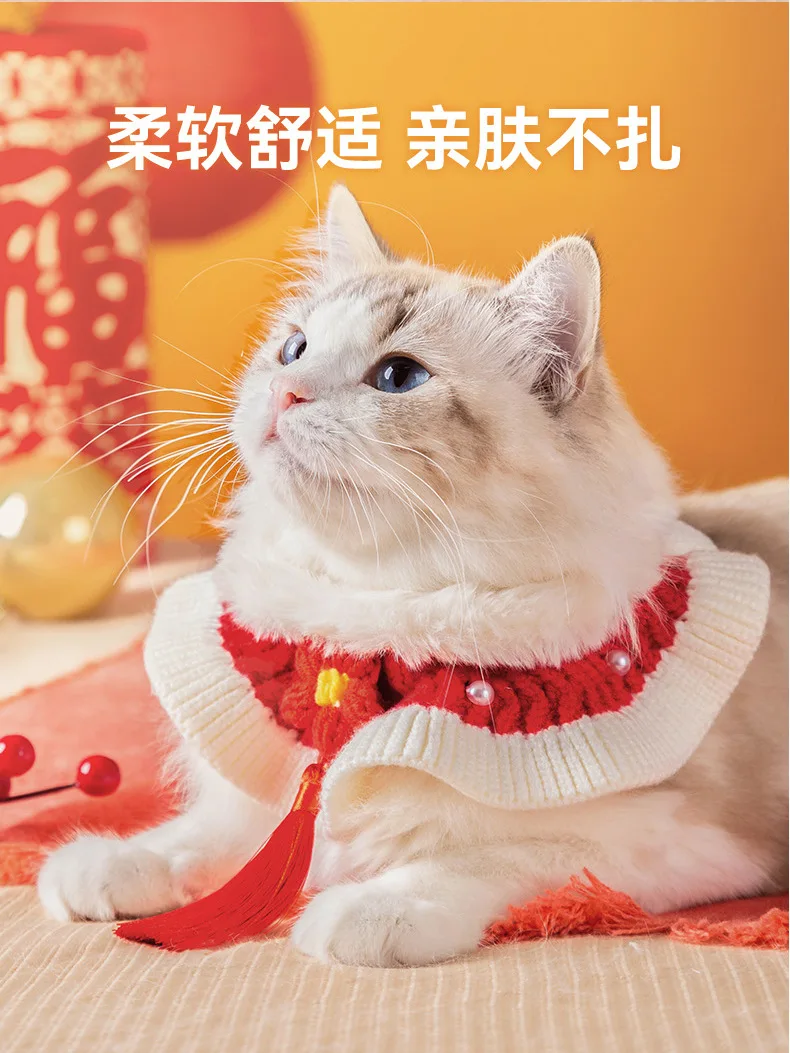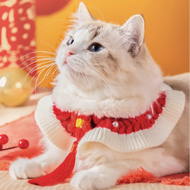 Babero de toalla para Saliva para gatos, bufanda tejida a mano para mascotas de Año Nuevo, Collar decorativo para cachorros y perros, accesorios tejidos, productos para mascotas