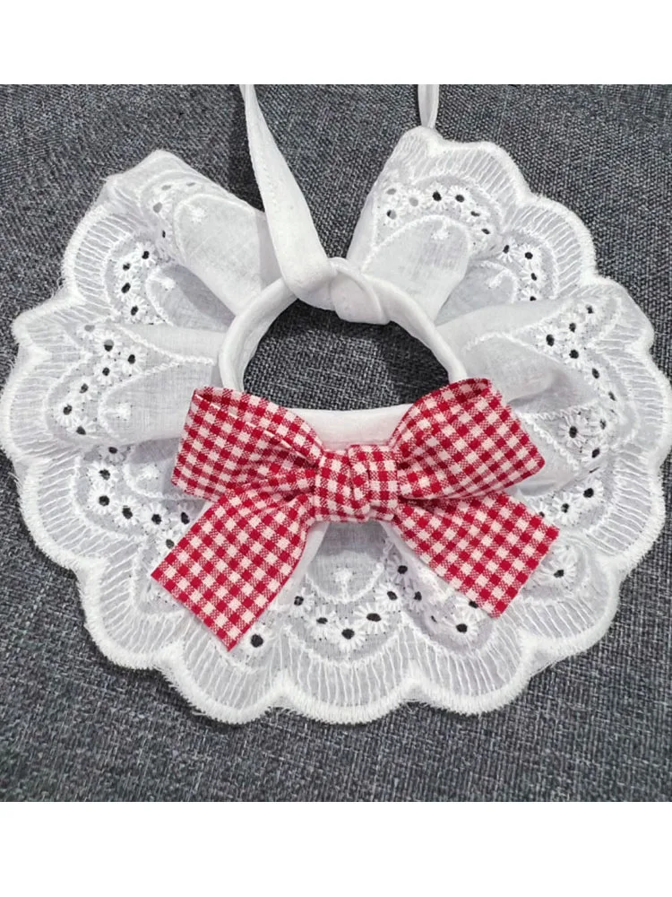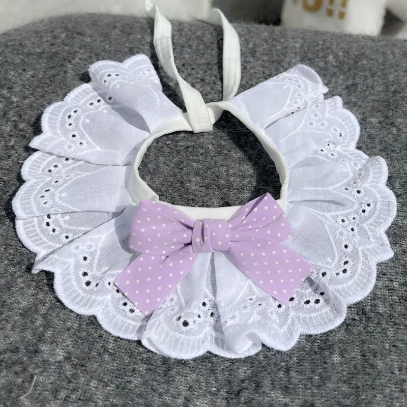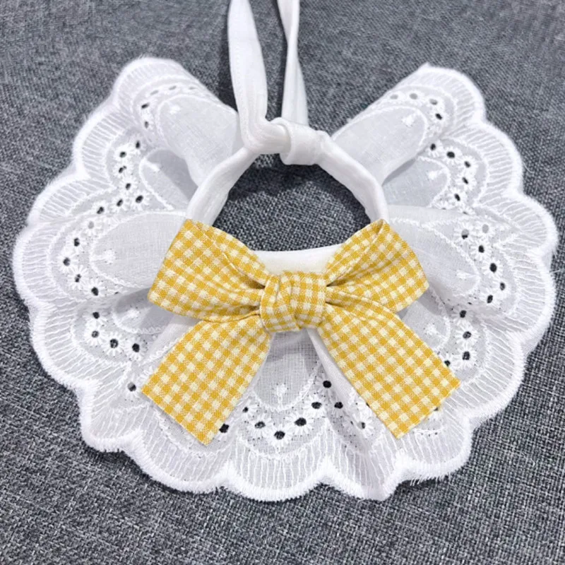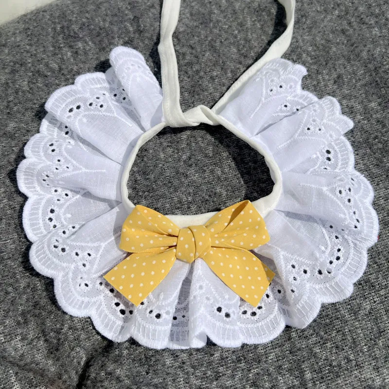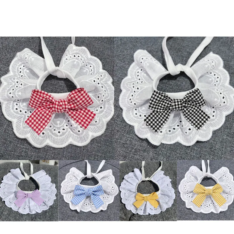 Baberos de encaje blanco para perros y gatos, pañuelo con lazo, accesorios para perros, collar de cadena para cachorros y gatitos, corbata, correa para el cuello, bufanda, producto para mascotas XS