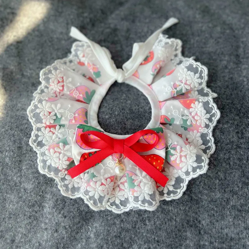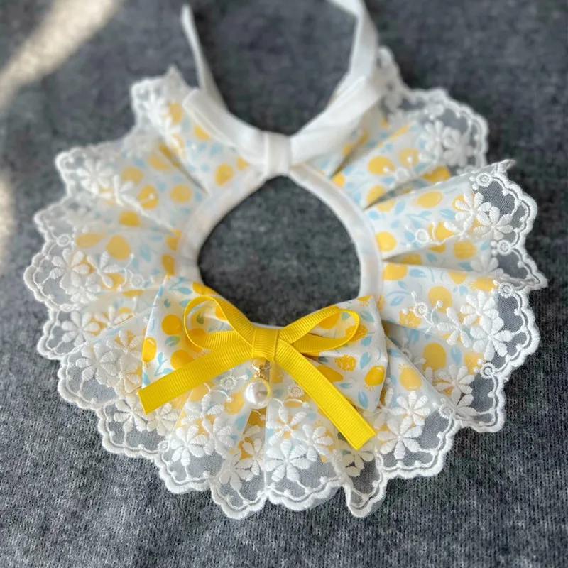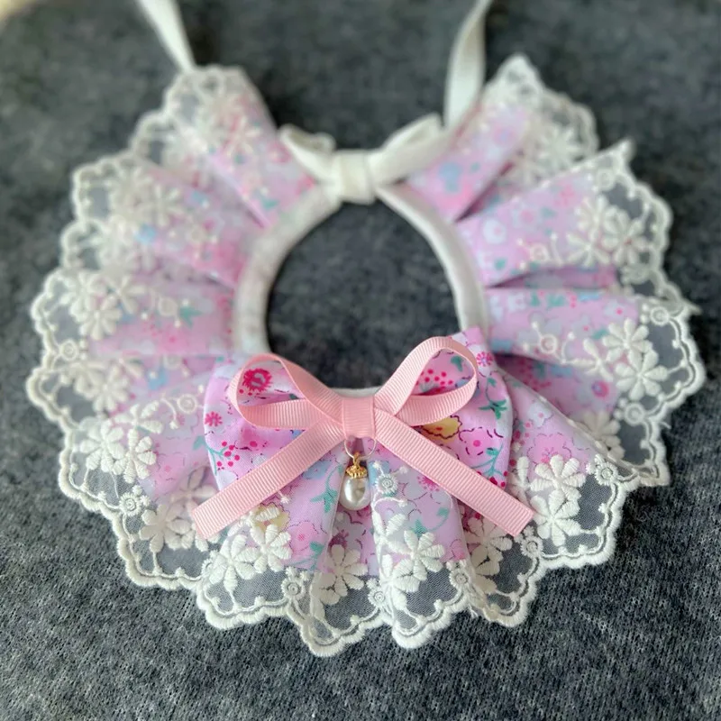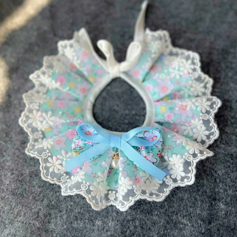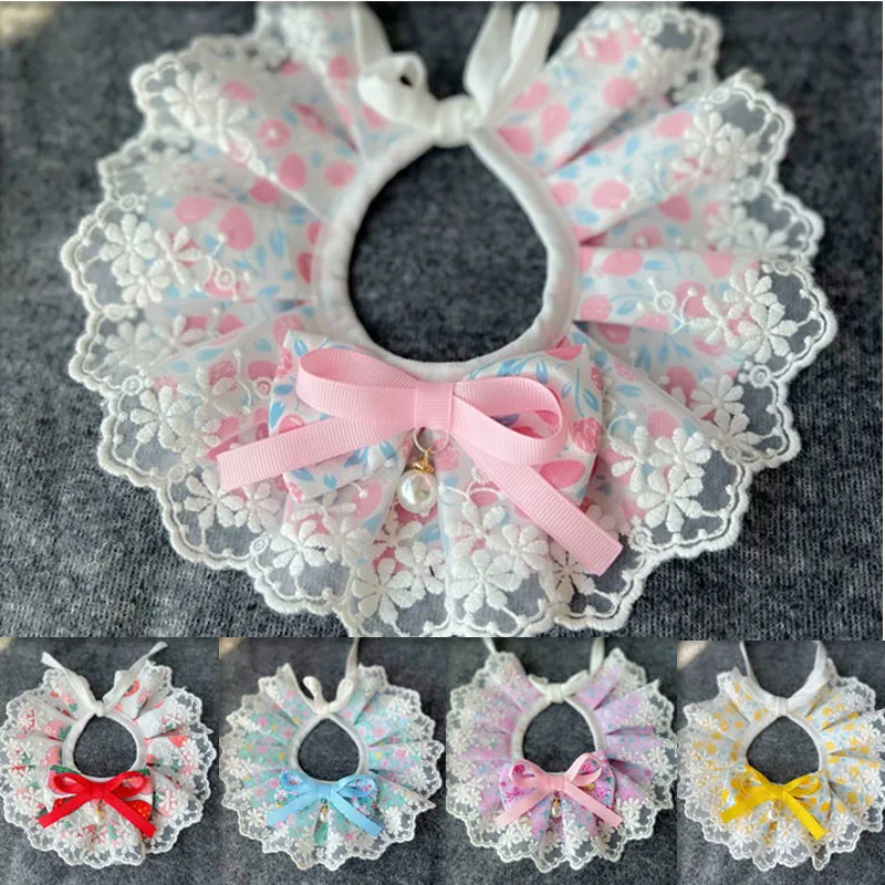Collar de Baberos para perros y gatos, bufanda de cuello de encaje con bordado Floral para niña, cinta con lazo, accesorios para mascotas, collar de lujo para perros, bandanas con correa