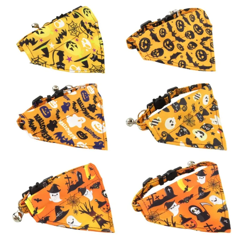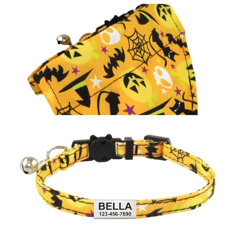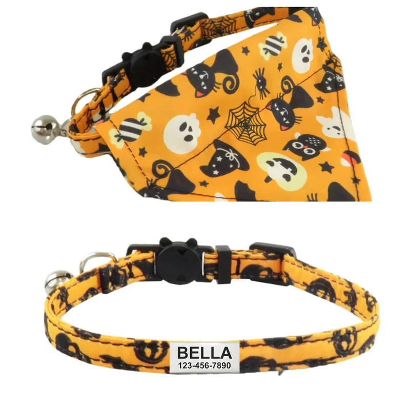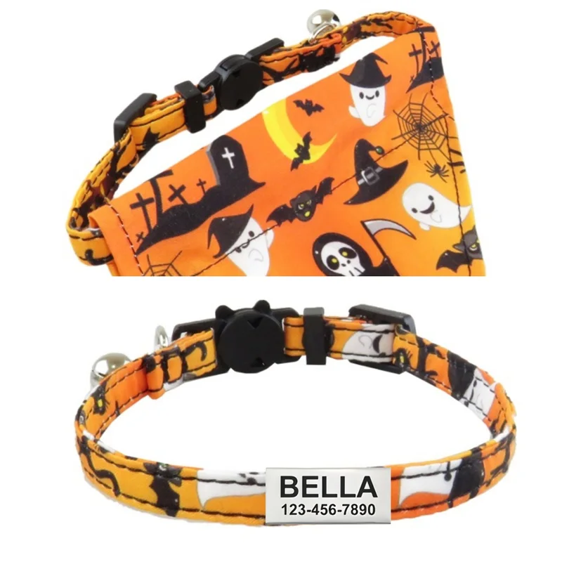 Baberos personalizados para mascotas de Halloween, etiqueta de identificación con nombre, bufanda ajustable para perro y cachorro y gato, pañuelo para el cuello, babero triangular