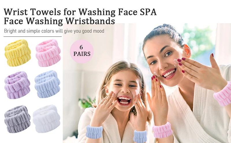 Cinturón para la muñeca, muñequeras de toalla de microfibra suave para lavar la cara, absorción de agua, lavado, previene la humedad