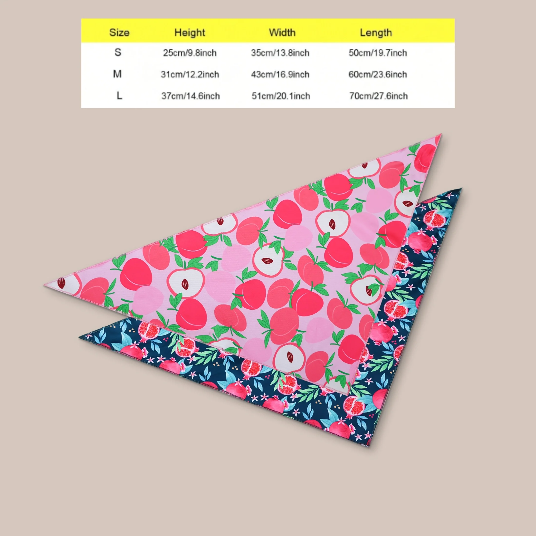 Bandana de frutas para perros, estampado de granada y melocotón, seda como bufanda ajustable para mascotas, lindas corbatas de verano para perros pequeños/medianos y gatos