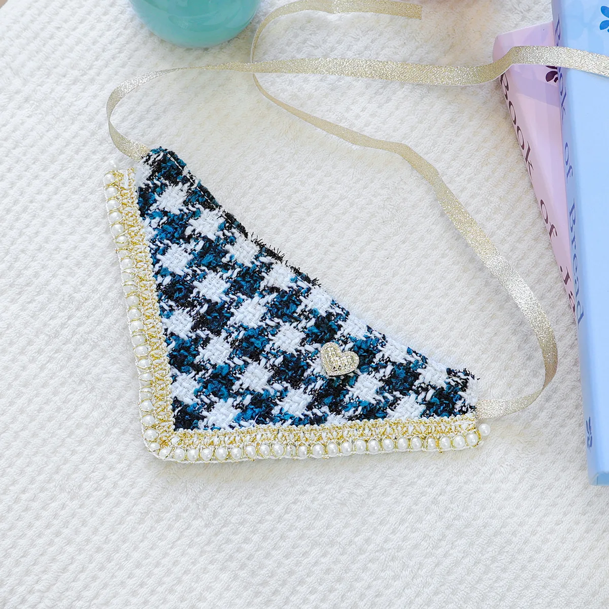Bandana de lujo para perros y gatos, vendaje triangular de Tweed ajustable, accesorios para perros pequeños, bufanda Triangular para cachorros y gatitos