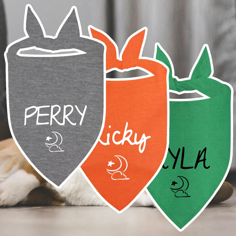 Bandana para perro con nombre personalizado, Collar con patrón de Luna personalizado, babero Triangular para mascotas, bufanda para accesorios para cachorros y gatos