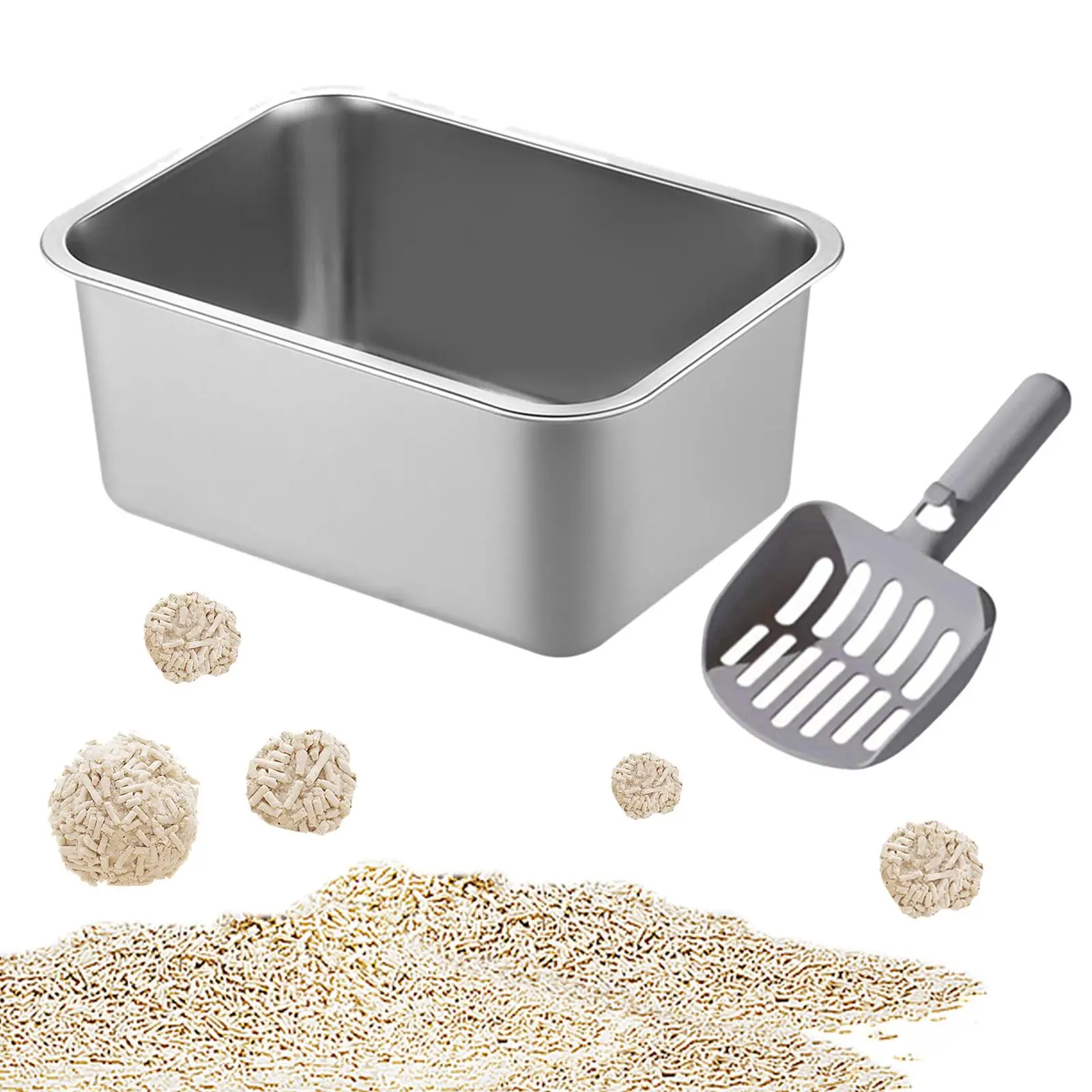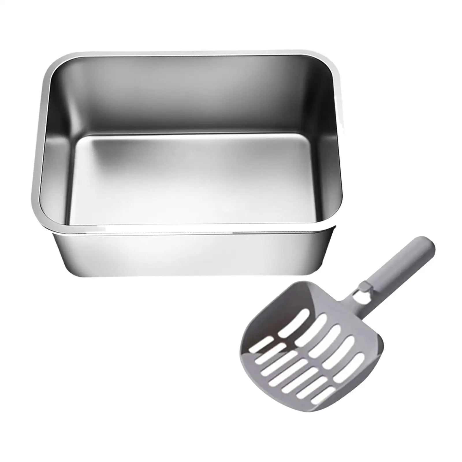 Material: esta bandeja para arena para gatitos está hecha de material de acero inoxidable de primera calidad, superficie lisa, firme, no es fácil de deformar ni rodar.