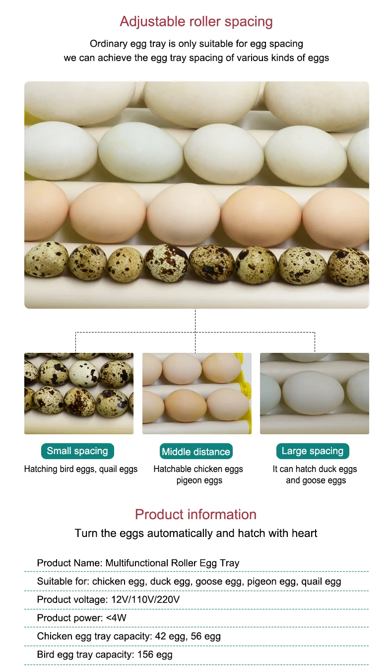 Características:Para todo tipo de huevos, aptos para pollo, pato, ganso, paloma, codorniz.