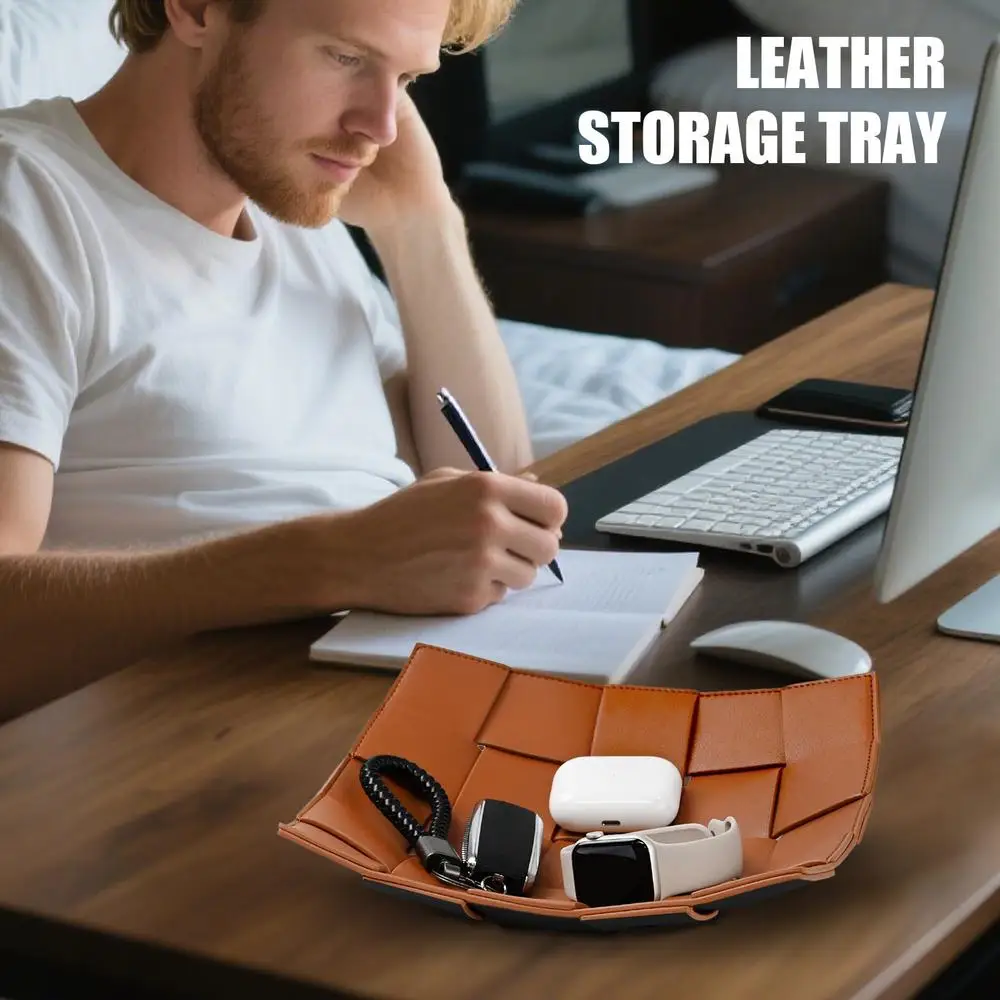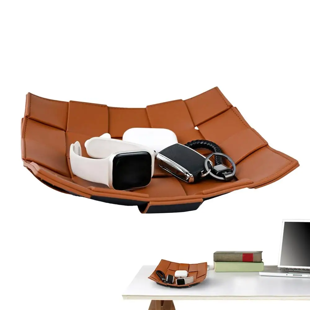 2. Diseño resistente a la deformación: elaborada con cuero artificial, esta bandeja para llaves presenta una textura fina y una estructura ajustada que resiste la deformación, manteniendo su apariencia con el tiempo.