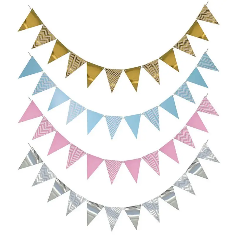 Estampado en caliente patrón ondulado Decoración de cumpleaños banner Festival Fiesta Decoración Accesorios triangular tirar bandera.
