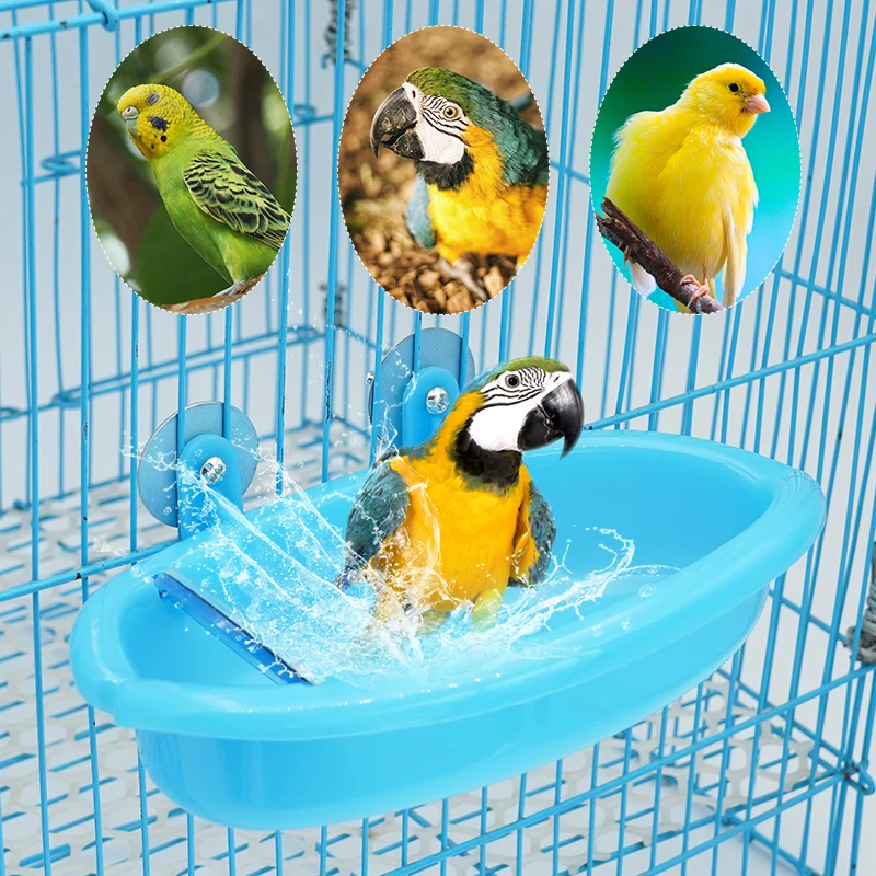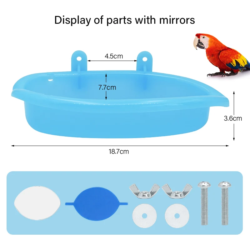 Bañera de agua para loros y pájaros, 1 Uds., con espejo para jaula para loros, cuenco colgante, loro, periquito, baño de pájaros + espejo