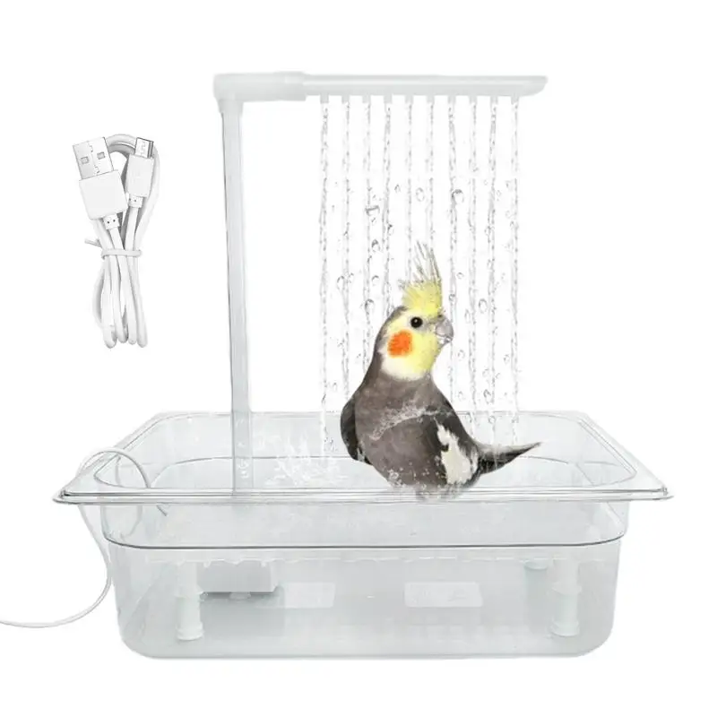 3. Ducha hidratante: diseñada para hidratar la piel y proporcionar un ambiente perfecto, esta bañera automática para pájaros promueve rituales de baño saludables, lo que permite a los pájaros disfrutar de un baño refrescante mientras ayuda a regular la temperatura corporal.
