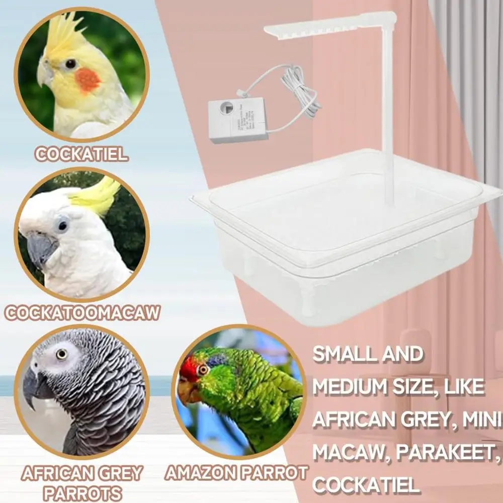 4.Alivia el estrés: diseñada para dejar que tus amigos emplumados florezcan, esta bañera automática ayuda a los loros a aliviar el estrés, garantiza el disfrute en casa y promete un verano encantador.