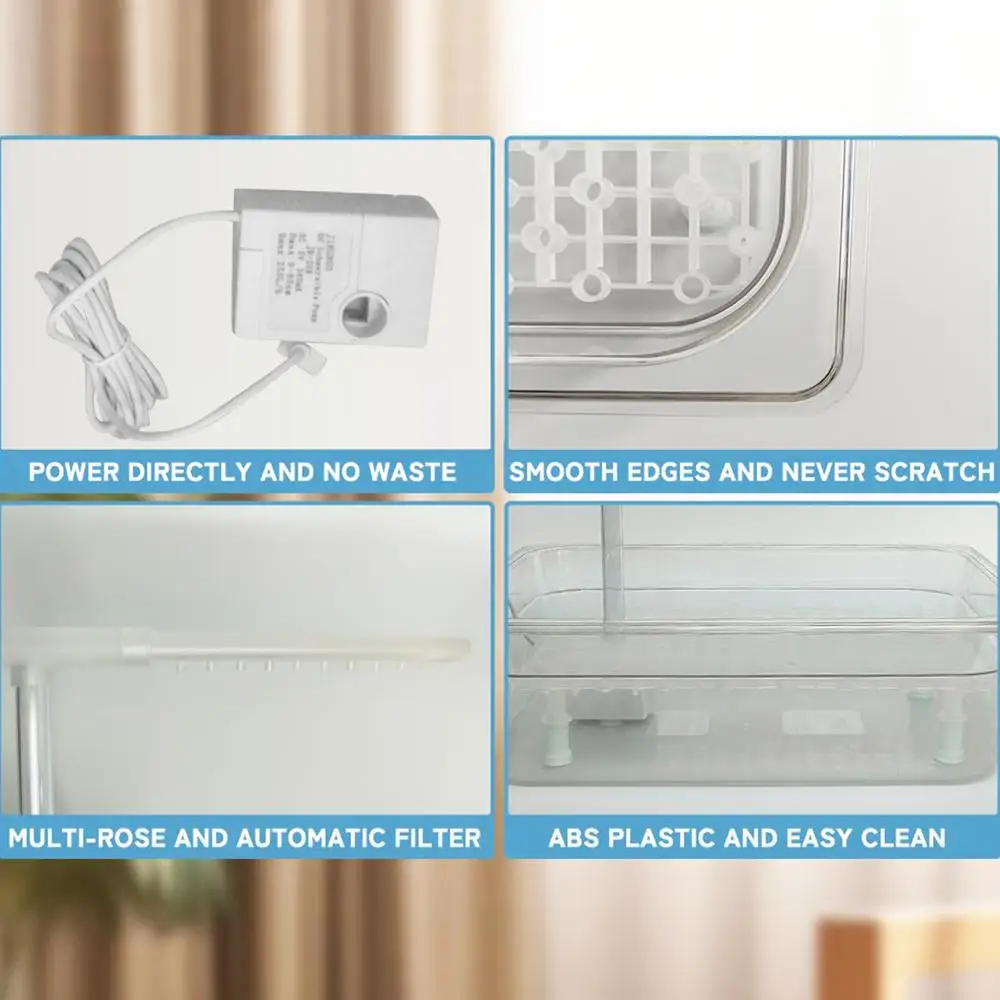 2. Diseño de grifo múltiple: el cable USB garantiza que la circulación del agua sea constante.Simplemente vierta un poco de agua en la bañera automática y observa cómo tus amigos emplumados disfruten de su fácil ducha.