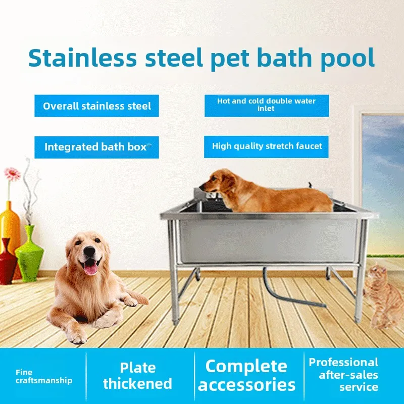 Bañera ordinaria para mascotas de acero inoxidable, bañera grande para perros, baño para perros