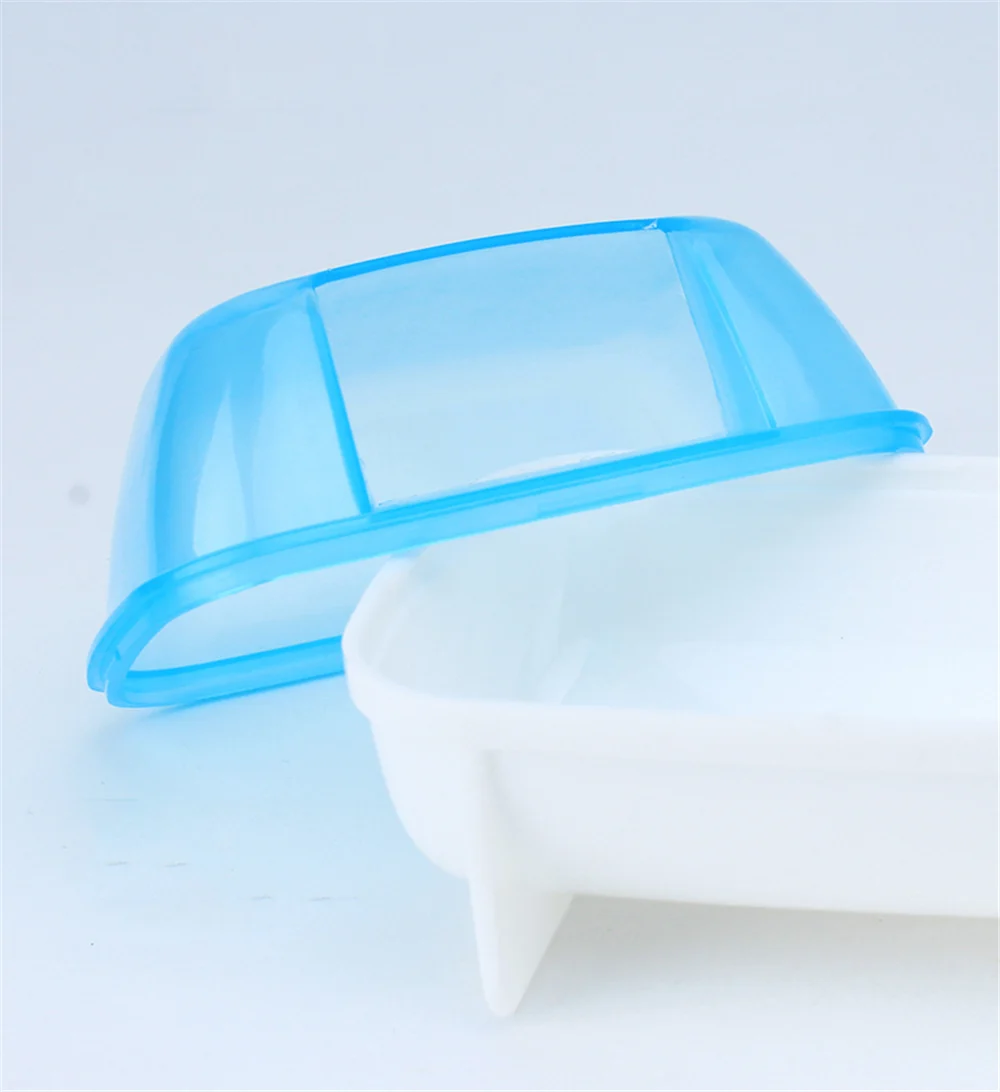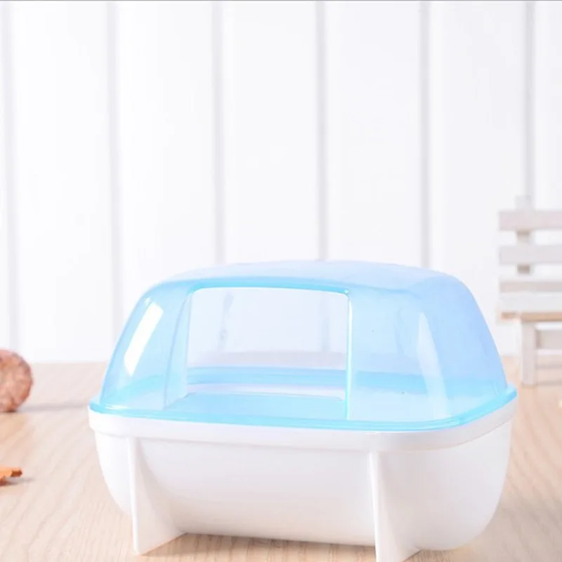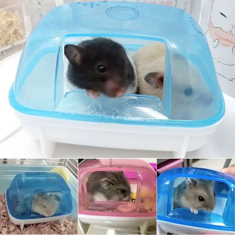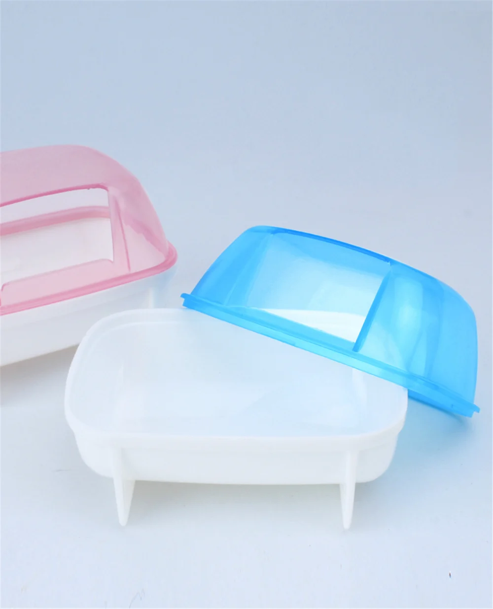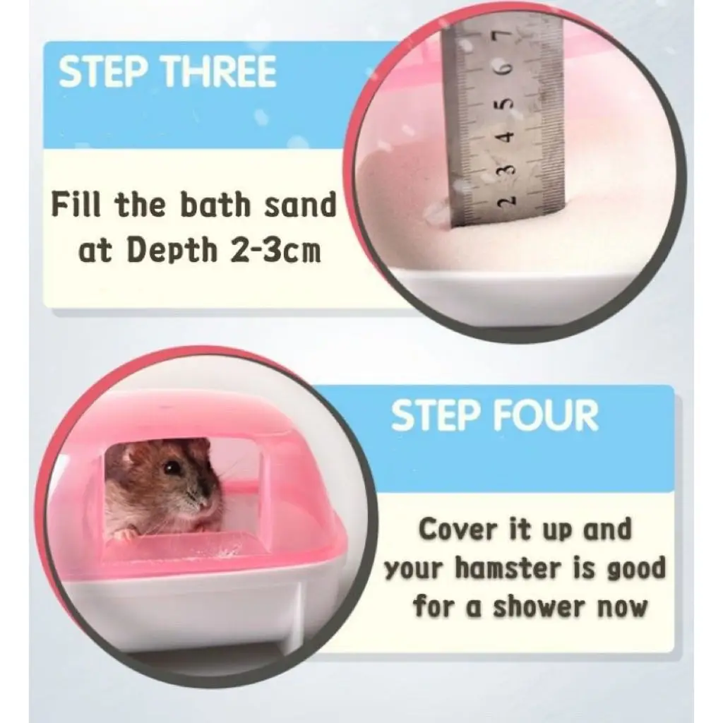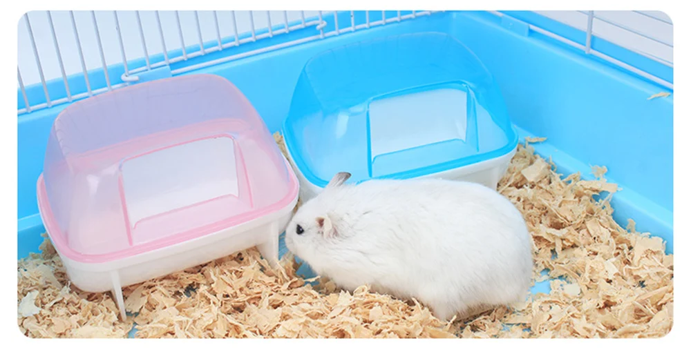 Abra la cubierta superior, vierta la arena de baño con una profundidad de aproximadamente 1 cm en ella, abroche la cubierta y luego colóquela en la esquina de la jaula.