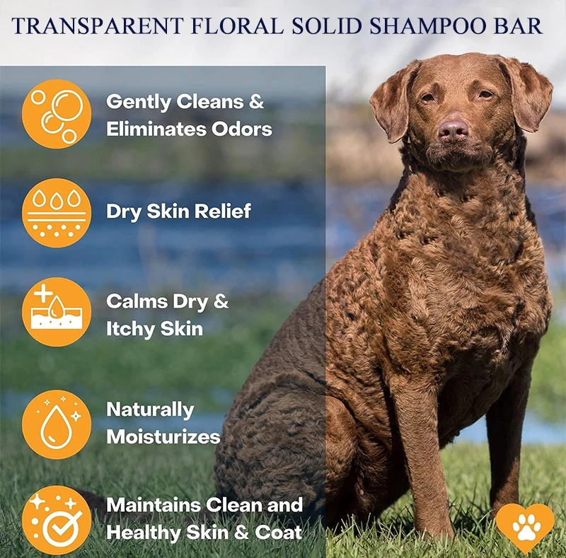 Barra de jabón de lavanda para perros, barra de jabón con aceite esencial añadido, caja de embalaje antipicazón, hidratante, orgánico Natural, 60g