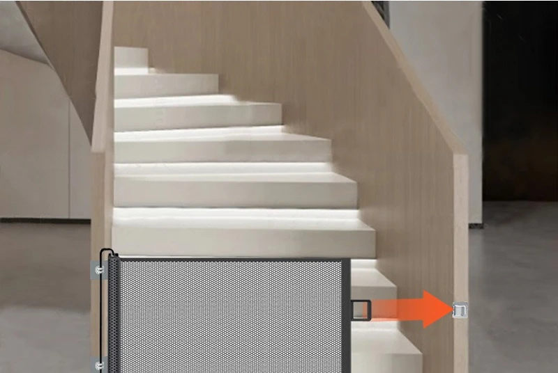 Descripción: Puerta retráctil automática para mascotas, valla para perros y gatos, escaleras interiores, red de aislamiento para pasillo