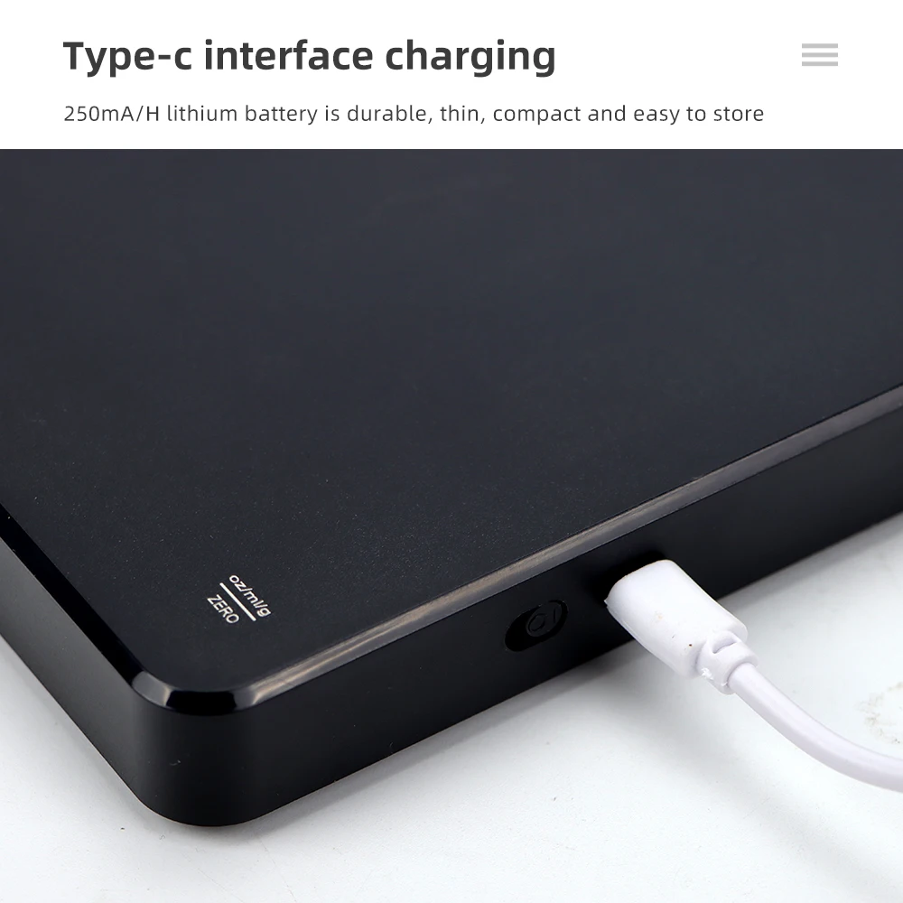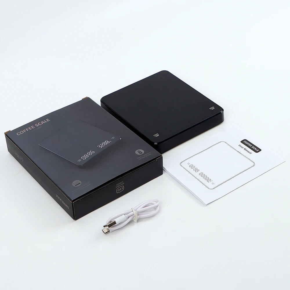 【Báscula de espresso recargable】Batería de litio incorporada de 250 mAh que se puede recargar a través del puerto tipo C y se incluye un cable de carga USB.No es necesario reemplazar las baterías.Y la báscula de café admite la función de apagado automático, más ahorro de energía y más ecológica.