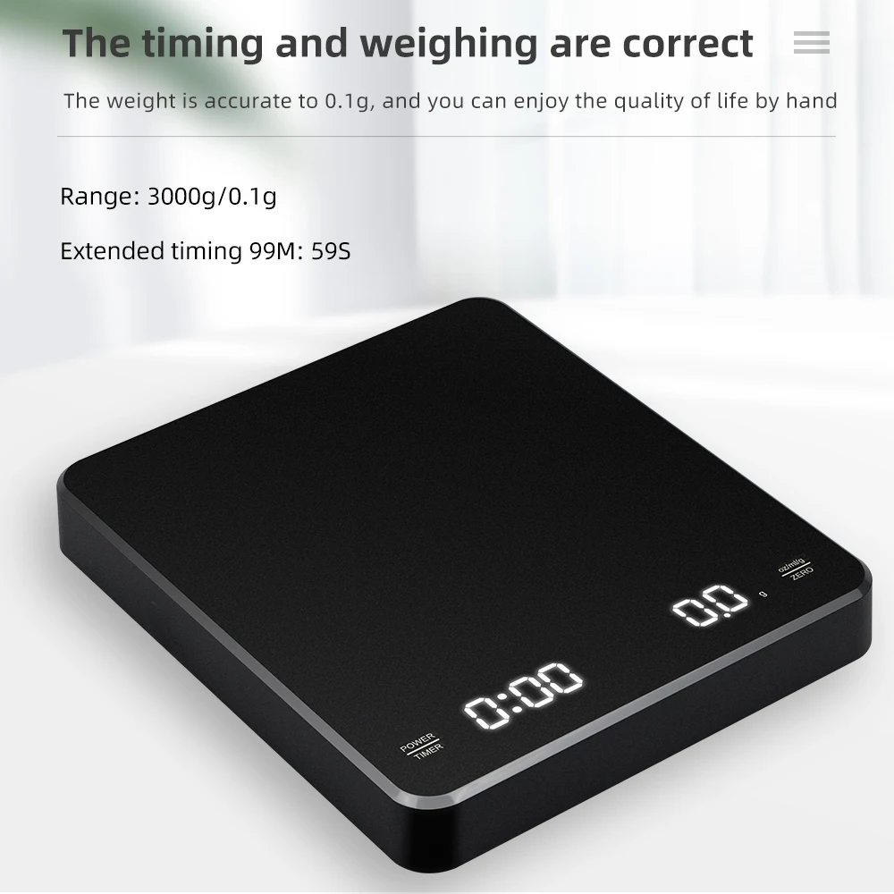 【Báscula de café con temporizador preciso】La báscula de café admite la función de temporizador.Un botón para iniciar y pausar.Al usar esta báscula de café, no solo puede registrar la proporción de agua y café en polvo, sino también registrar el tiempo de preparación, lo que es muy cómodo de usar.