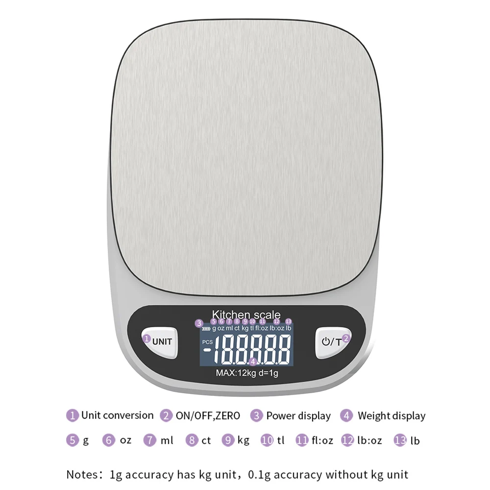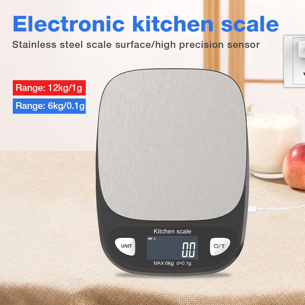 Báscula electrónica de precisión para cocina y alimentos de 6/12KG, balanza Digital LCD, joyería, báscula de comida para café para hornear en el hogar