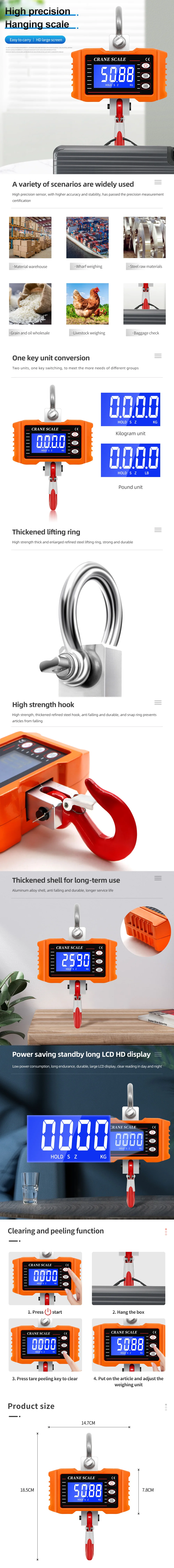 Báscula Digital de grúa de 500kg/1000KG, LCD, pesaje de alta precisión, báscula colgante de gancho Industrial resistente, balanza