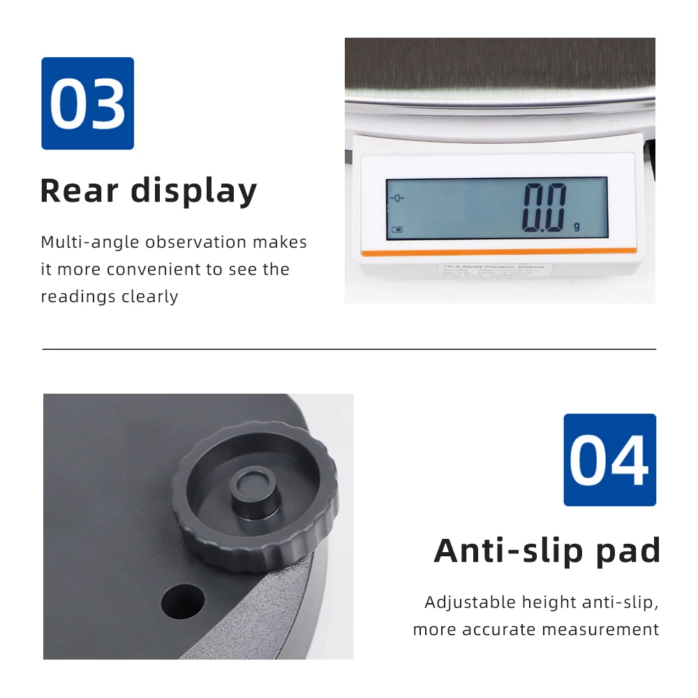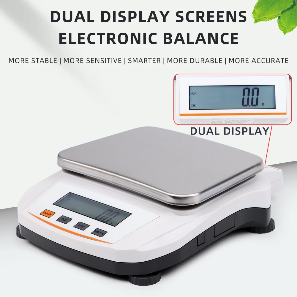 Báscula electrónica de laboratorio con pantalla dual, balanza analítica de alta precisión de 0,1g, 1KG, 3KG, 5KG, báscula de pesaje, enchufe europeo