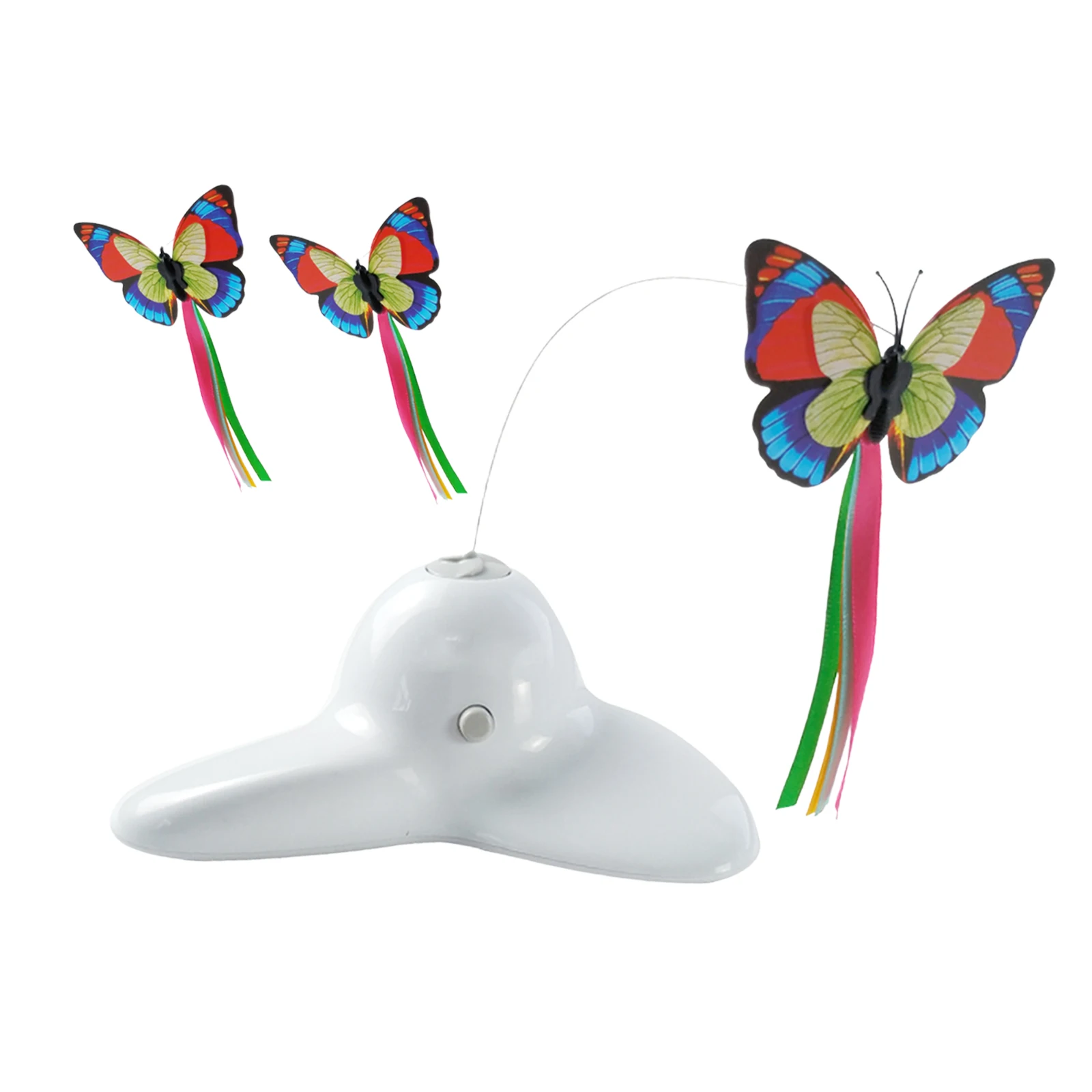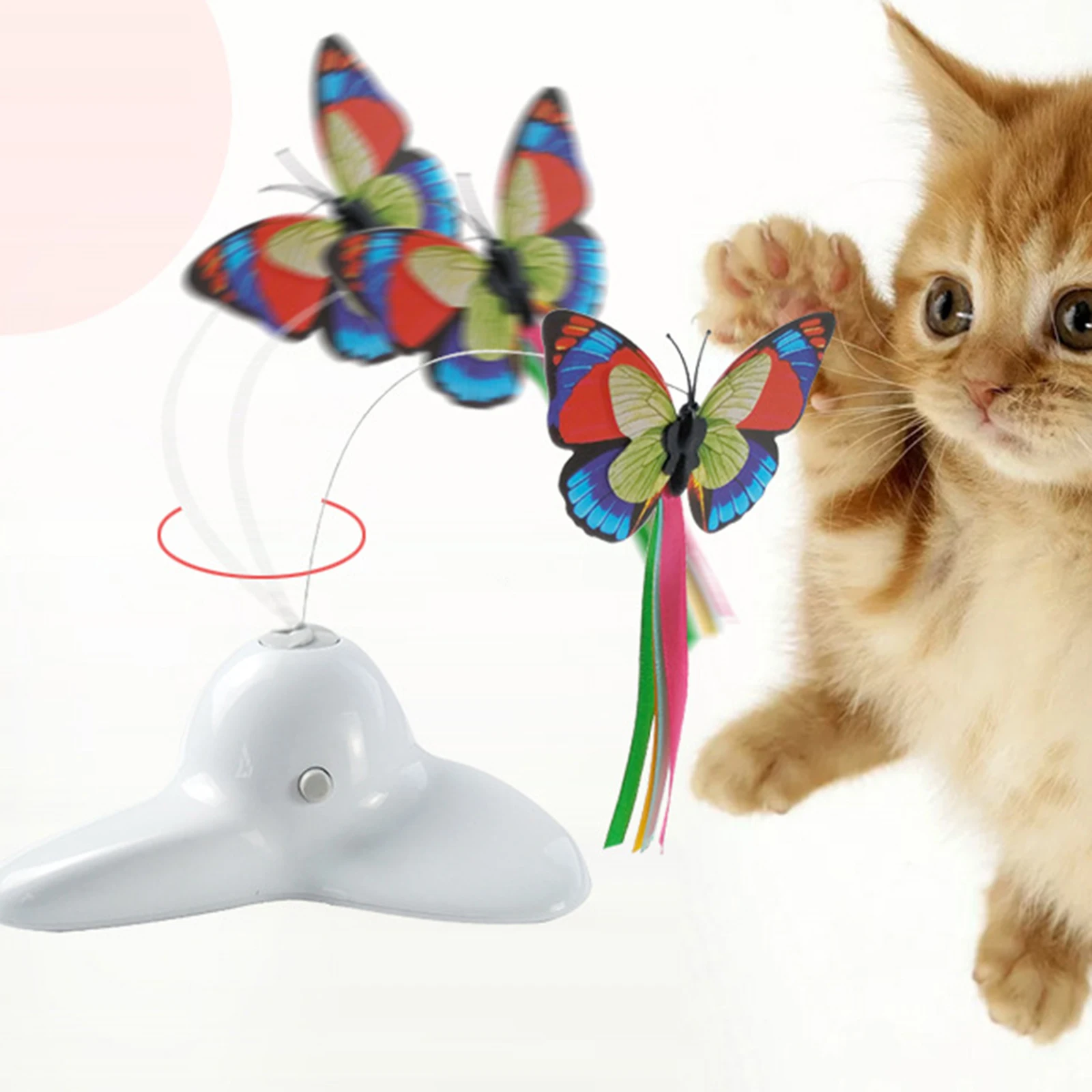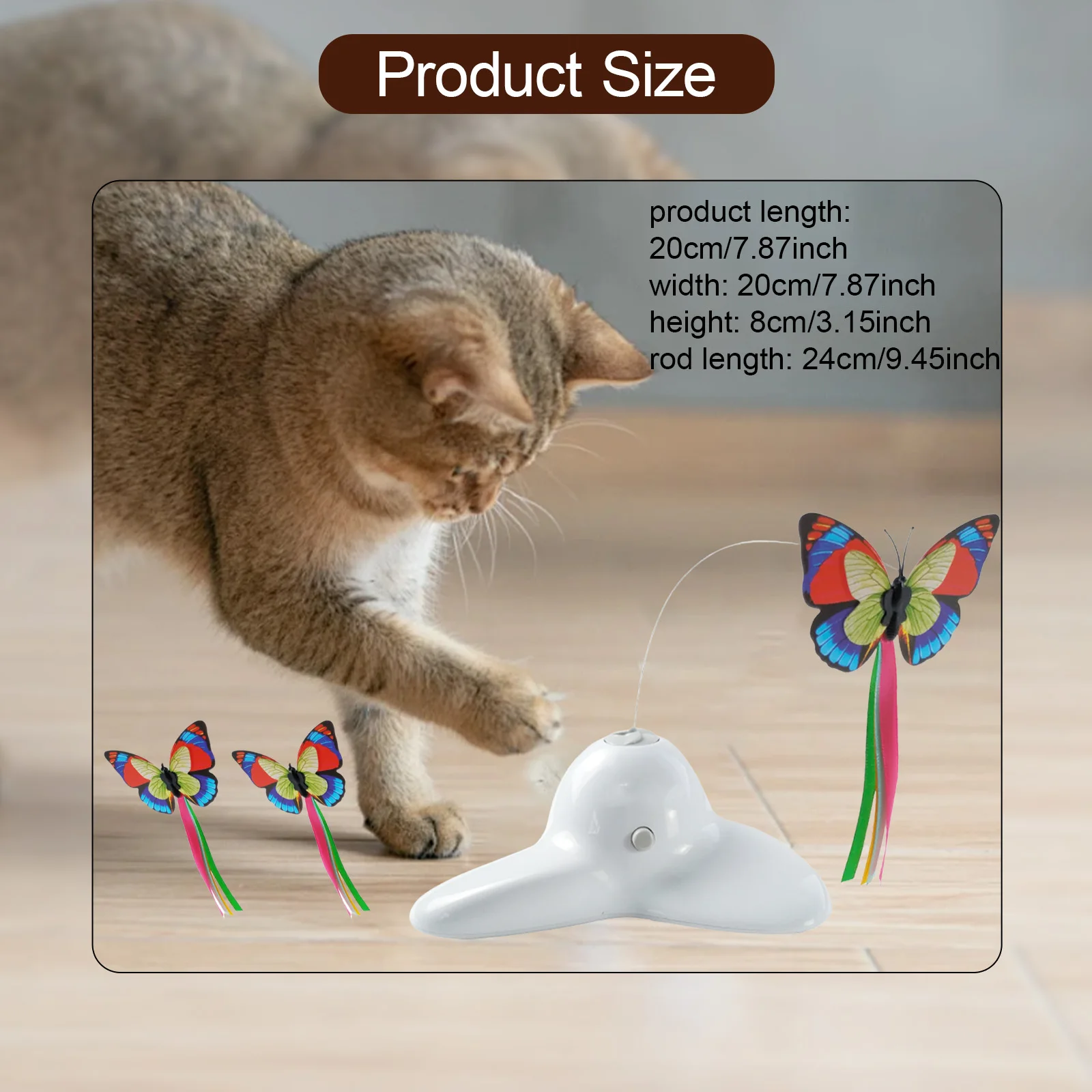 【Diseño atractivo】: Con tres mariposas giratorias de 360 grados y una base estable, el palo teaser para gatos brinda a su gato una experiencia de juego entretenida.