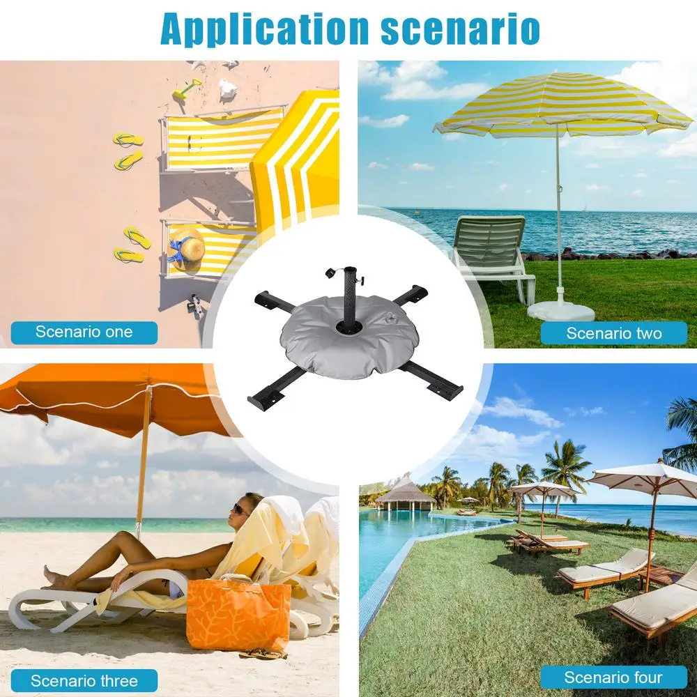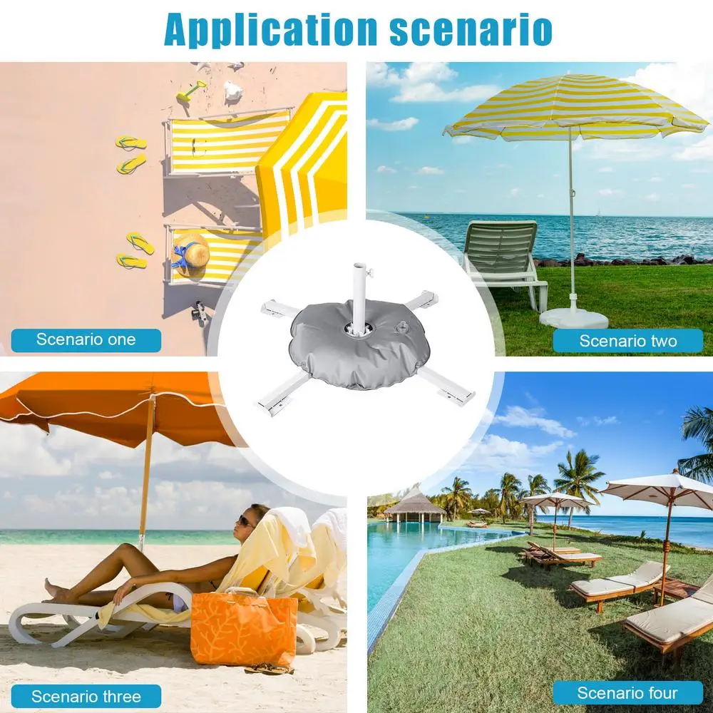 4. Estabilidad mejorada: ingeniosamente diseñada para mantener el equilibrio, esta base de sombrilla viene con una bolsa de agua capaz de soportar hasta 10kg, asegurando que su paraguas se mantenga firme, mejorando la estabilidad a medida que llena la bolsa.
