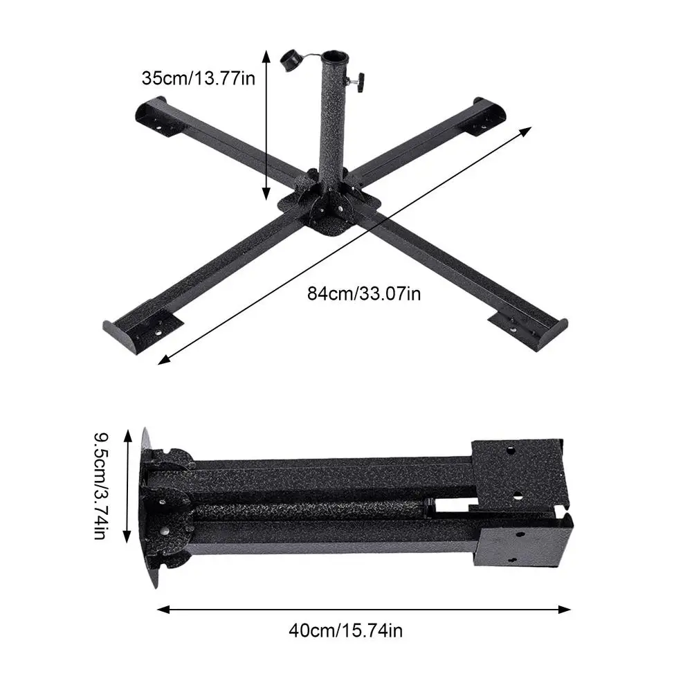 3. Equilibrio inquebrantable: elaborado con hierro duradero y PVC, esta base de sombrilla está diseñada para estabilizar su sombra, asegurando un uso duradero y resistente al óxido, sin deformarse.