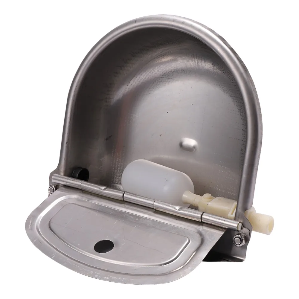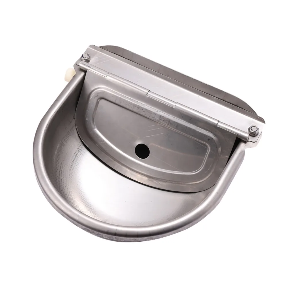 Descripción: 1.Hay 2 orificios de fijación traseros, fáciles de reforzar. 2.Flotador automático, utiliza el principio de flotación del nivel de agua, logra un efecto de nivel de agua constante. 3.Hecho de material de acero inoxidable, duradero y resistente. 4.La interfaz es firme y fuerte, con mano de obra fina. Nombre: Tazón para beber con bolas flotantes de ganado de acero inoxidable Material: acero inoxidable 304 Color: Plata Tamaño: Aprox.27X25X10cm Tamaño de la interfaz: Rosca externa 1/2" (20 mm) Adecuado para: Animales grandes como ganado, caballos, ovejas, cerdos, perros, etc. Características: Salida automática de agua, duradera, económica e higiénica, etc. El paquete incluye: 1 ud. x cuenco de agua para vaca Principio de funcionamiento: El bebedero se puede conectar directamente al agua del grifo, utilizando el principio flotante de la bola flotante para almacenar agua automáticamente; Después de que el agua llena el recipiente, el flotador flota, presiona el cojín de cuero y el agua se apaga automáticamente; Después de que el animal bebe el agua en el recipiente de agua, la bola flotante cae, el cojín de cuero se afloja, el agua se abre automáticamente y el recipiente de agua se llena y el agua se cierra automáticamente.Este ciclo realiza el autocontrol del agua y ahorra agua. Nota: 1.Debido a la diferencia de luz y pantalla, el color del artículo puede ser ligeramente diferente al de las imágenes. 2. Permita diferencias de 0-2 cm debido a la medición manual.