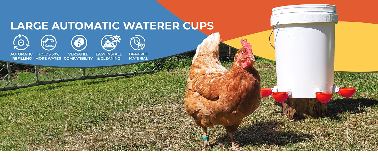 🐓 Superior en diseño para el bebedero de pezones de pollo. Nuestra taza para pollos tiene un tamaño de tazón grande y rellene automáticamente a sus pájaros le encantará esta adición a su gallinero.