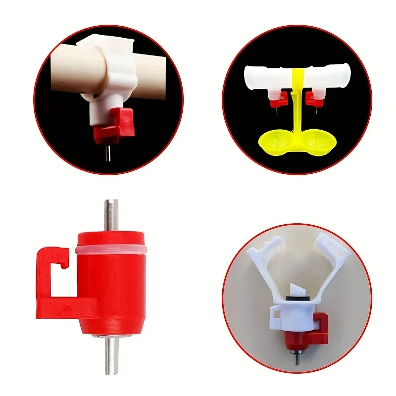 Bebedero de pezón de bola de acero para pollos, Cassette de 5 piezas, boquilla de válvula de bola de cabeza roja