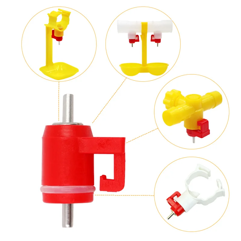 Tetina roja para beber de pollo de codorniz de 16 piezas, bebederos de bola de acero para alimentador de loro de ganso de pato suministros para aves de corral tazas para beber