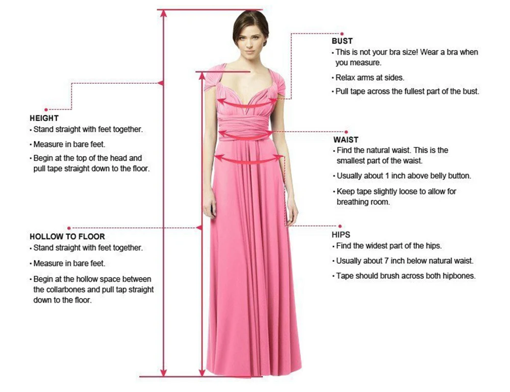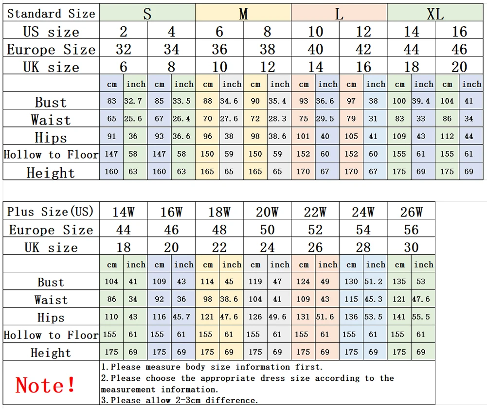 2. Elija la talla de vestido adecuada de acuerdo con la información de medición.