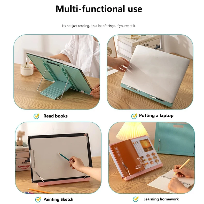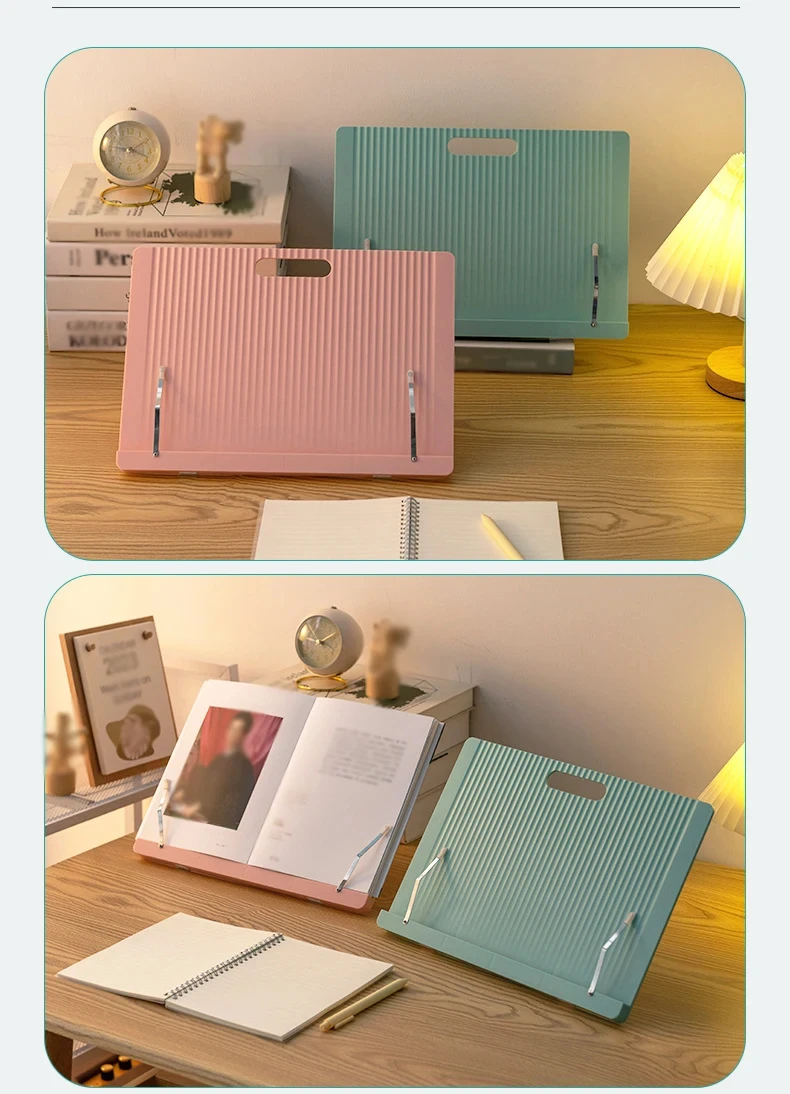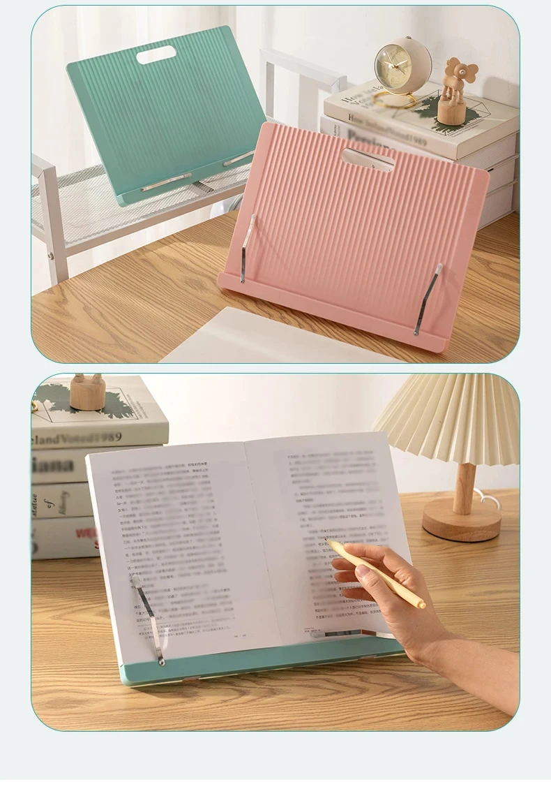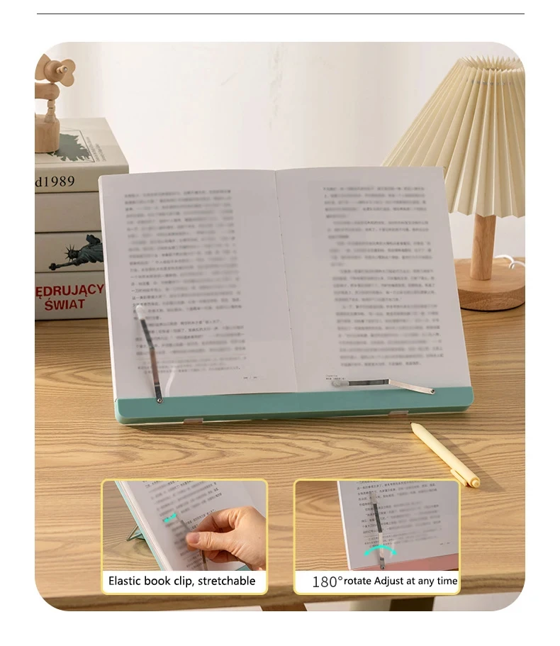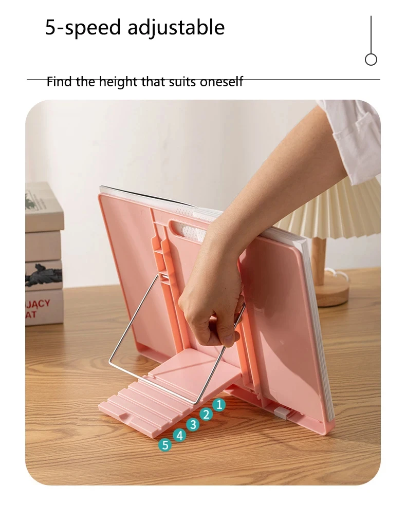 Large(13.4x0.7x9.5IN),Book Stand for Reading,Desk Book Bookshelf,Portable Sturdy,for Recipes,Textbooks,iPad, Reading Rest with 5 Adjustable Positions and Page Paper Clips