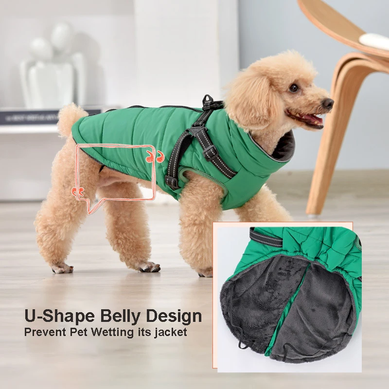 Diseño del vientre en forma de U: evita que la mascota moje su chaqueta