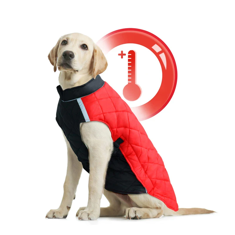 CHAQUETAS CALIENTES PARA PERROS:El diseño exterior impermeable de un chaleco de invierno para perros resiste eficazmente la nieve y el frío, con algodón grueso en el medio, proporcionando una gran calidez. La buena protección del vientre de una chaqueta de camping para perros mantiene a su amigo peludo limpio y seco de condiciones húmedas, y el diseño acolchado permite que nuestra chaqueta para perros en clima frío se caliente después de muchos lavados.