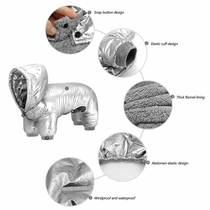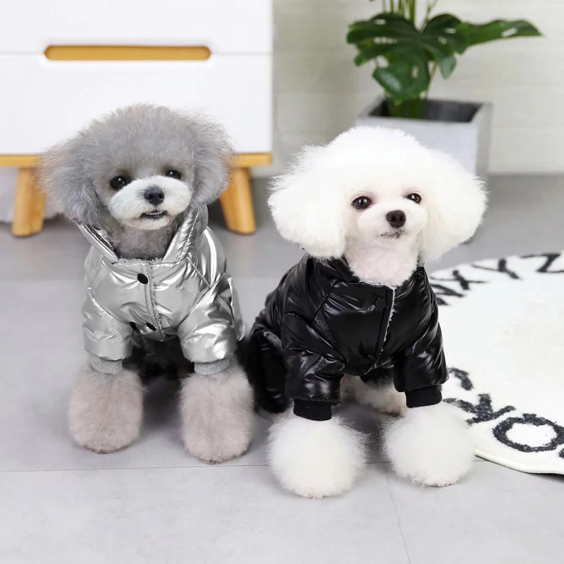 【Diseño de cierre de botón】 --Chaquetas de plumón cálidas de color sólido para perros con puño elástico y estilo elástico de cuatro patas, diseño de botón a presión de chaqueta para mascotas, muy fácil de poner y quitar.