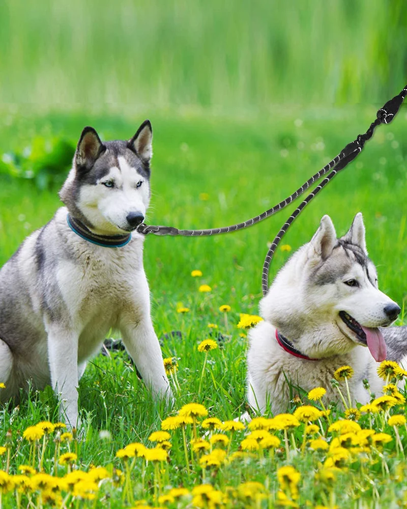 Seguridad-Benefíciese de seguridad adicional por la noche con las costuras reflectantes que cubren la longitud de ambas cuerdas, este acoplador doble para perros proporciona una experiencia de caminar más cómoda y agradable para usted y su perro. ¡La vida es fácil!