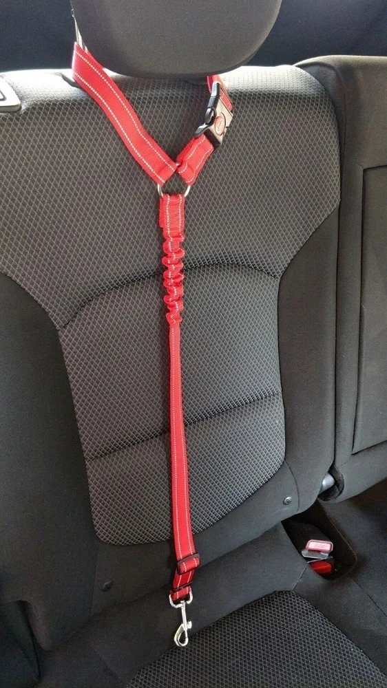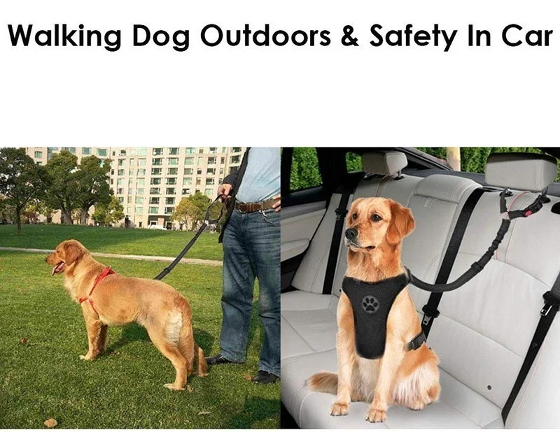 Bien hecho y detalles perfectos.--- La hebilla de liberación rápida bloqueable de este cinturón de seguridad es resistente y el hardware es todo de metal, mientras que las correas están hechas de nailon duradero. El diseño de costura reflectante lo hace ideal para uso nocturno. La cuerda elástica ayuda al perro a evitar tirones con un movimiento repentino.