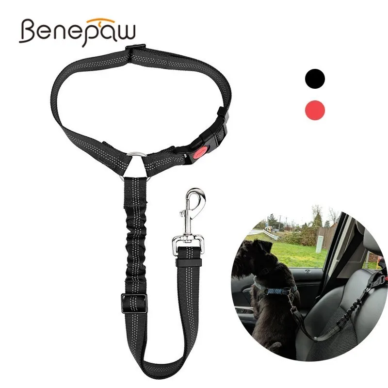 Diseño de sujeción del reposacabezas--- Este cinturón de seguridad para perros Benepaw está diseñado con sujeción para reposacabezas. Se puede utilizar en todos los modelos de vehículos que tengan reposacabezas. El círculo de la correa que cuelga en el reposacabezas está conectado por una hebilla de liberación rápida bloqueable. La hebilla con cerradura evita que el círculo se abra y asegura que su mascota esté segura. Ajuste el cinturón de seguridad a la longitud máxima y agarre el círculo de la correa para usarlo como correa general.