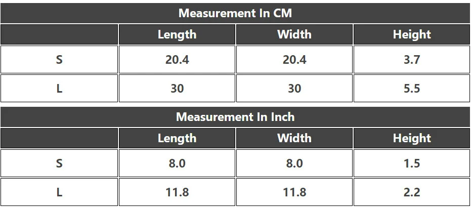 El tamaño puede tener una diferencia de 0-1 cm debido a la medición manual.