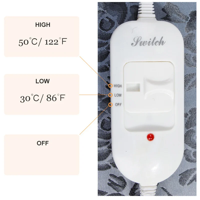 Control de temperatura de protección de apagado:Nivel alto/bajo de control de temperatura. La temperatura se puede ajustar y puede ser de hasta 50 grados centígrados/122 grados Fahrenheit.Puede evitar el sobrecalentamiento para proteger a sus mascotas.