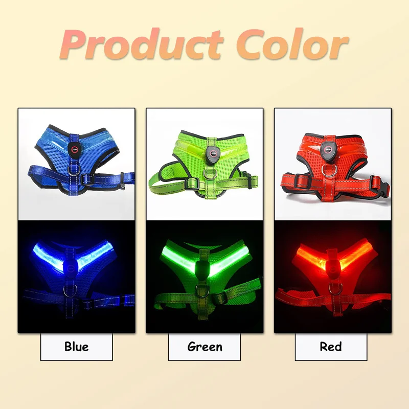 ARNÉS DE JUEGO LED RECARGABLE POR USB:El arnés LED para chaleco para perros se puede cargar mediante USB, el paquete incluye un cable USB.