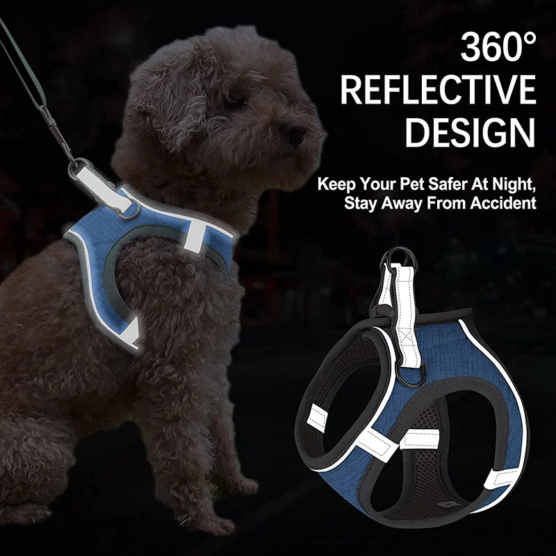 REFLECTANTE Y SEGURO PARA MASCOTAS-El arnés reflectante para perros de 360 ° hará que su perro se vea muy fresco y fácil de ver por la noche, asegurando que su perro esté seguro cuando venga el coche.