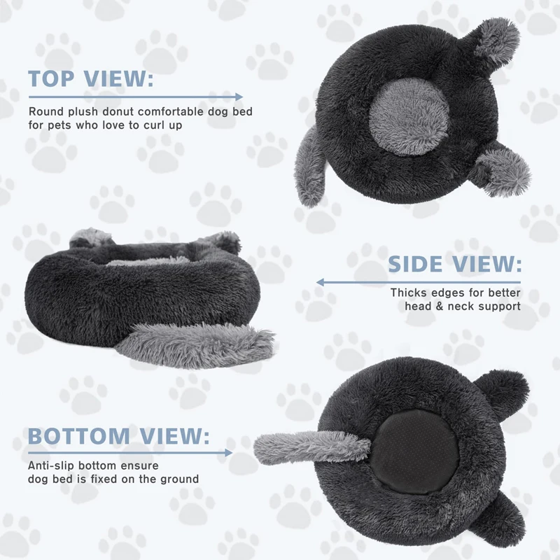 【DISEÑO ÚNICO】Nuestras camas para perros están decoradas con dos lindas orejas y una linda cola. Hay cinco tamaños disponibles para su elección. Se recomienda que Mida el tamaño de su mascota antes de comprar.