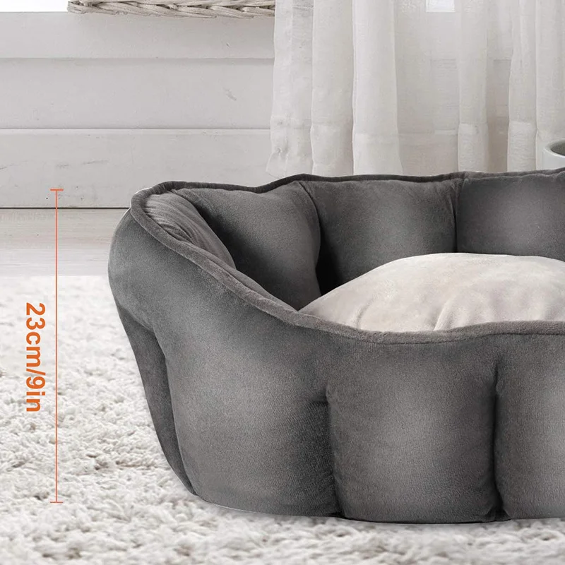 APOYO AL SUEÑO PROFUNDO:Esta suave cama para mascotas está diseñada de acuerdo con los hábitos de sueño de las mascotas; el borde elevado crea una sensación de seguridad y proporciona soporte para la cabeza y el cuello, haciendo que parezca que una madre está abrazando a un bebé. Esta elegante cama para mascotas permitirá que sus mascotas duerman bien; el sueño de alta calidad está garantizado para la vitalidad de la mascota.