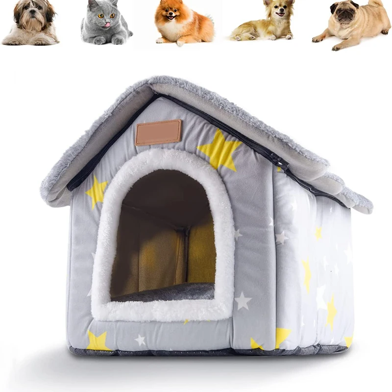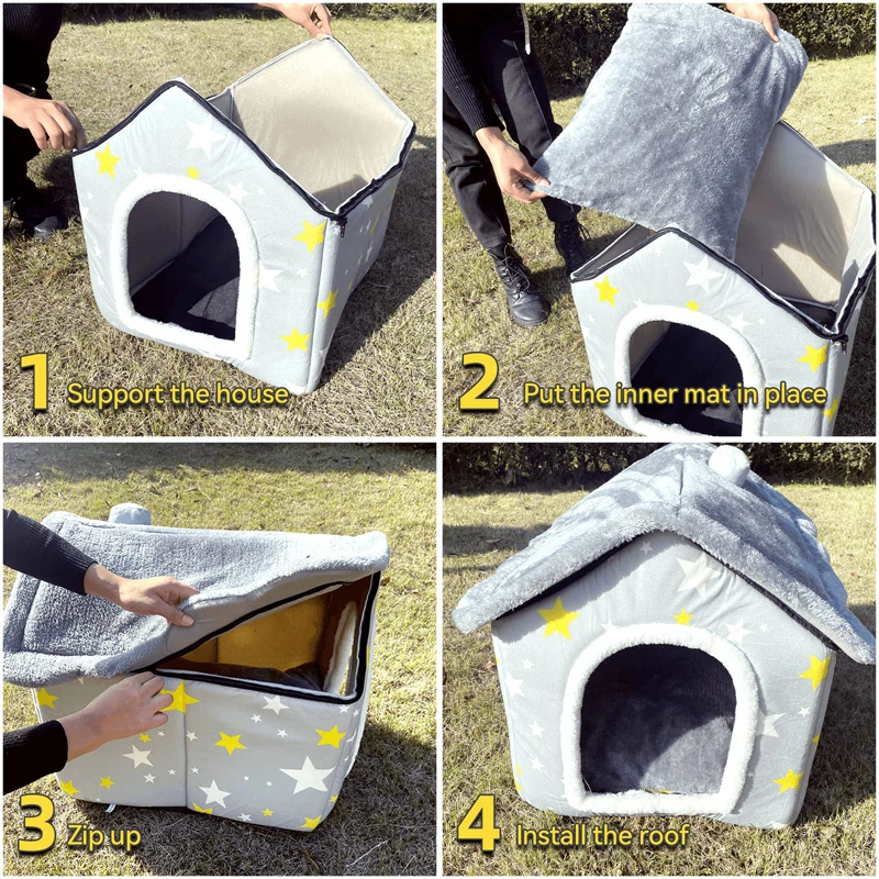 Tamaño-La Casa de Interior para perros es adecuada para mascotas, tales como: perros pequeños (Chihuahua, Pugs, Shih Tzus), gatos (Sphinx, Scottish Fold, Bombay Cat, Egyptian Cat, Cornish Curly, gato Java). La casa interior para perros se puede plegar y desmontar, lo que facilita su transporte y almacenamiento. Fácil de llevar contigo cuando viajes y actividades al aire libre también.